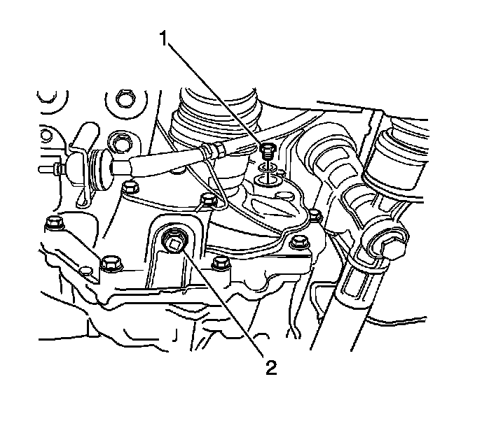 3. Remove the oil level plug (2) and check the fluid level.