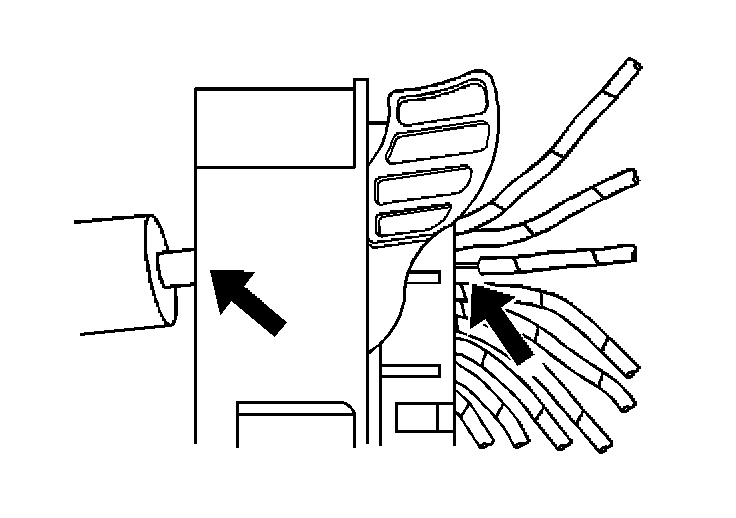 7. Insert the J 44020-4 (GM P/N 15314260) tool into the 2 triangular cavities on each side of the terminal at the front of the connector.