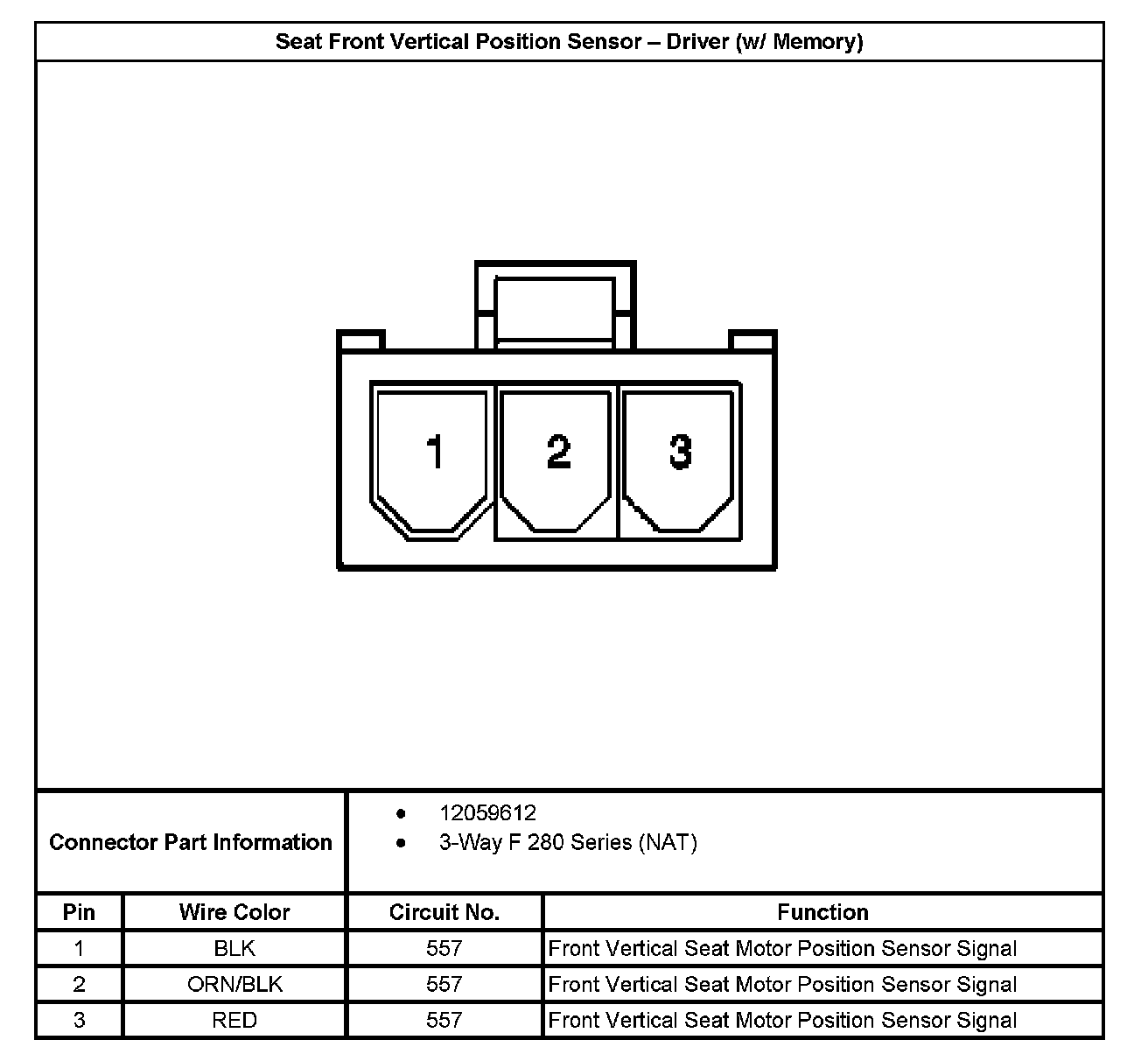 Seat Front Vertical Position Sensor - Driver (w/ Memory):