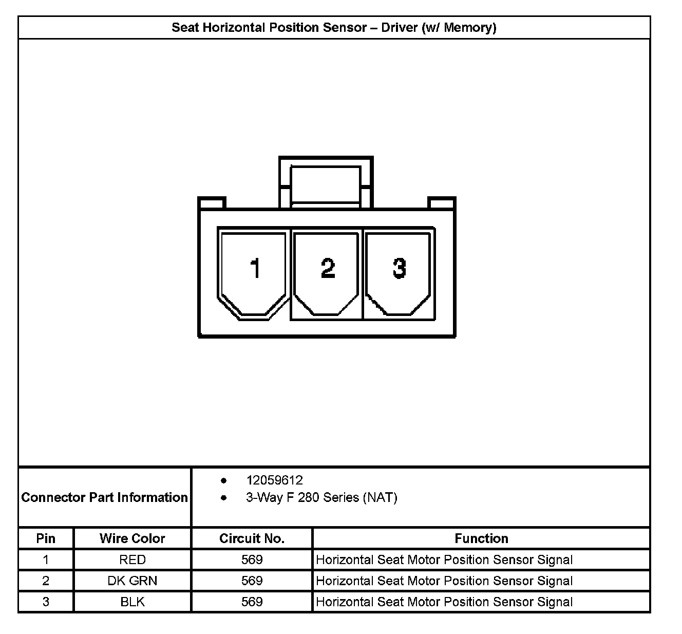 Seat Horizontal Position Sensor - Driver (w/ Memory):
