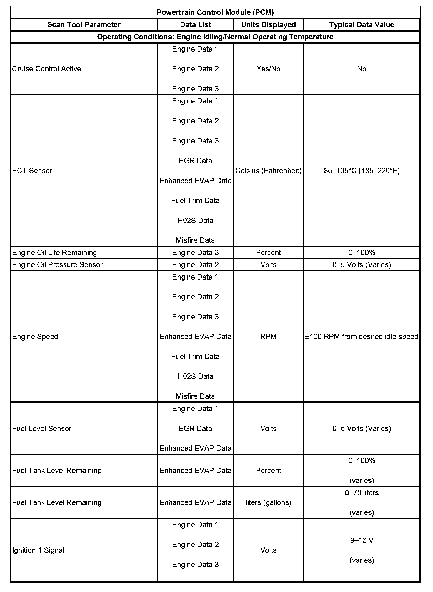 Scan Tool Data List - Powertrain Control Module (PCM)