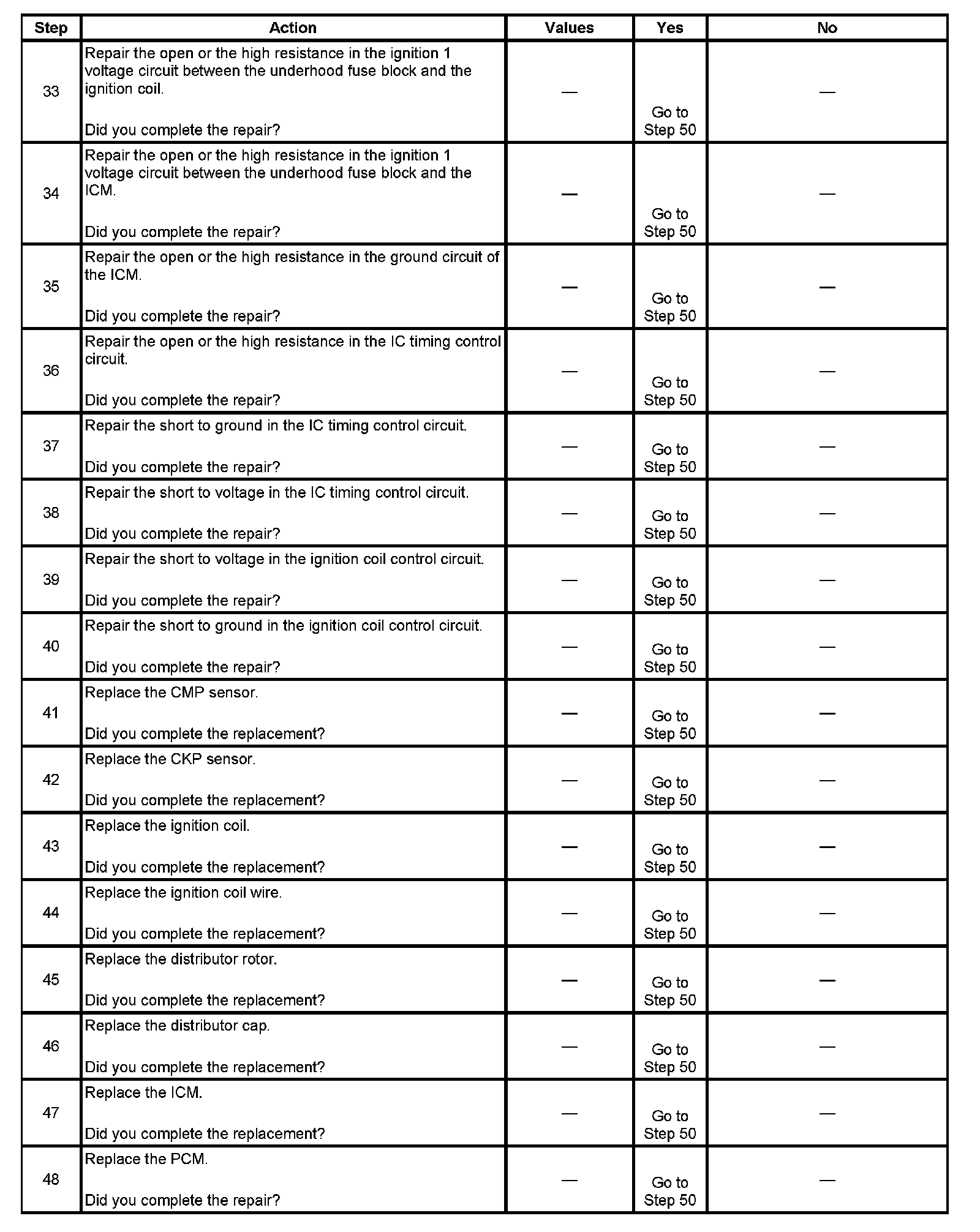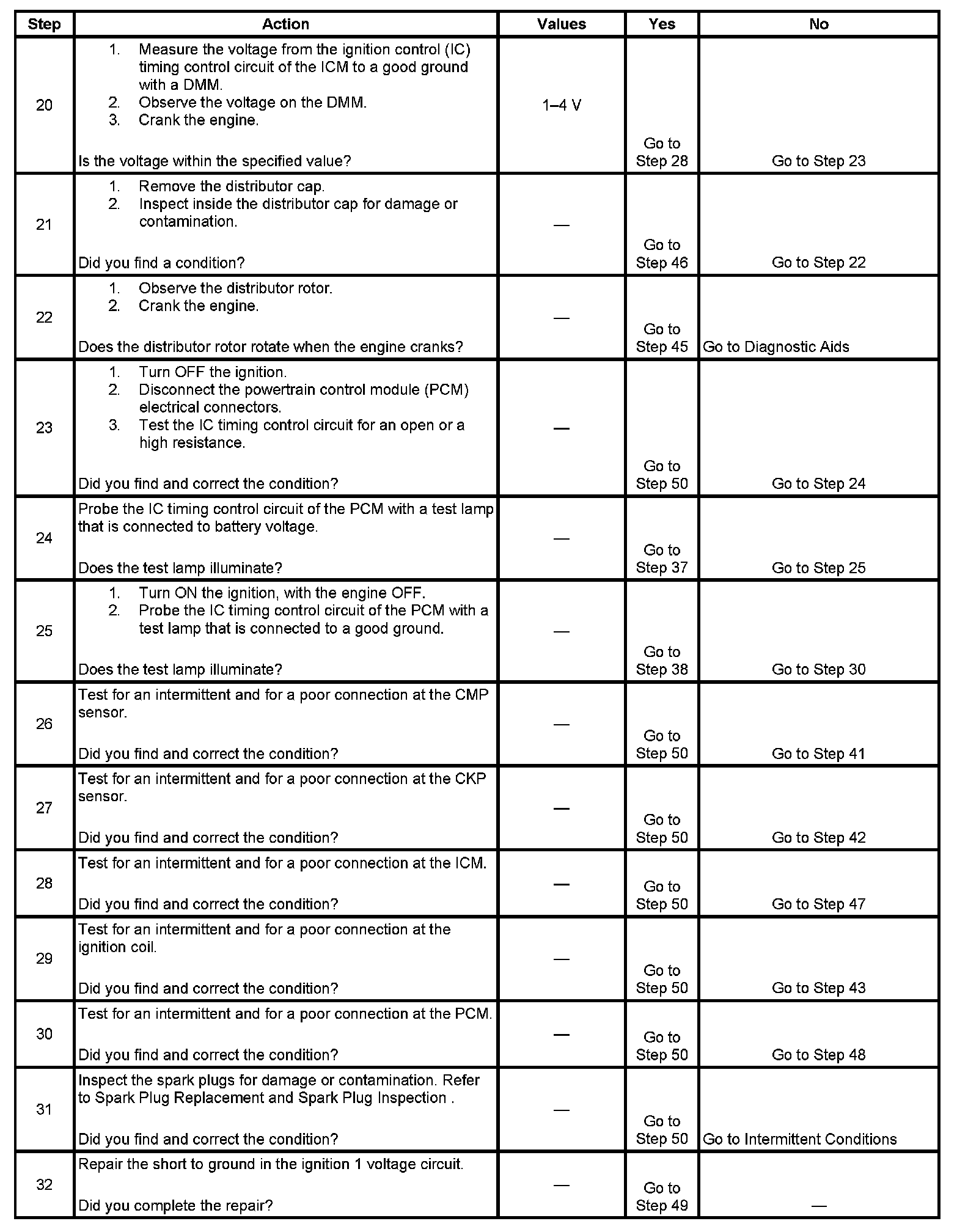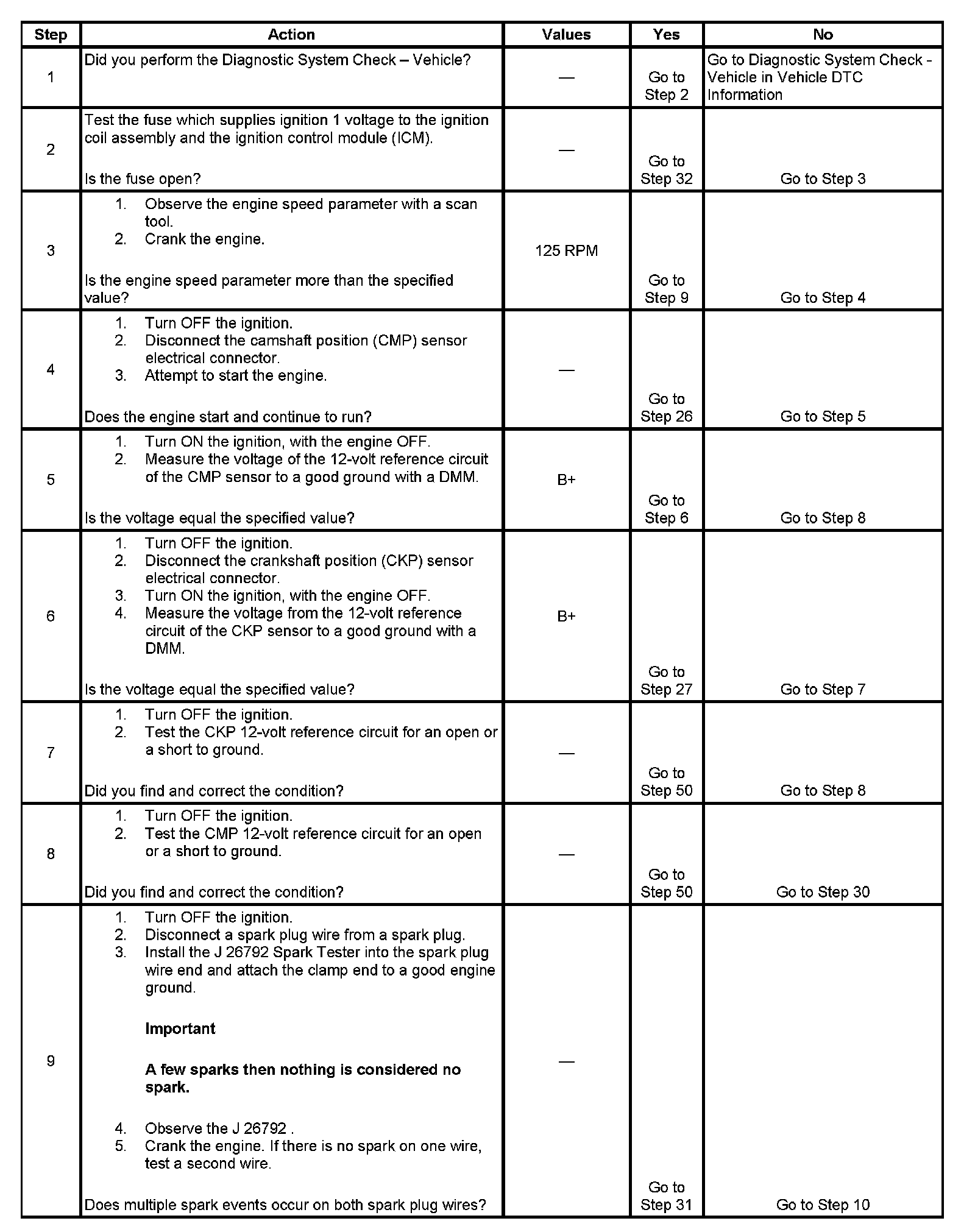 The Distributor Ignition (DI) System Diagnostic Table assumes the following conditions: