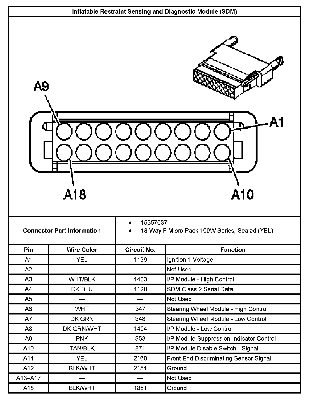 Inflatable Restraint Sensing And Diagnostic Module (SDM):