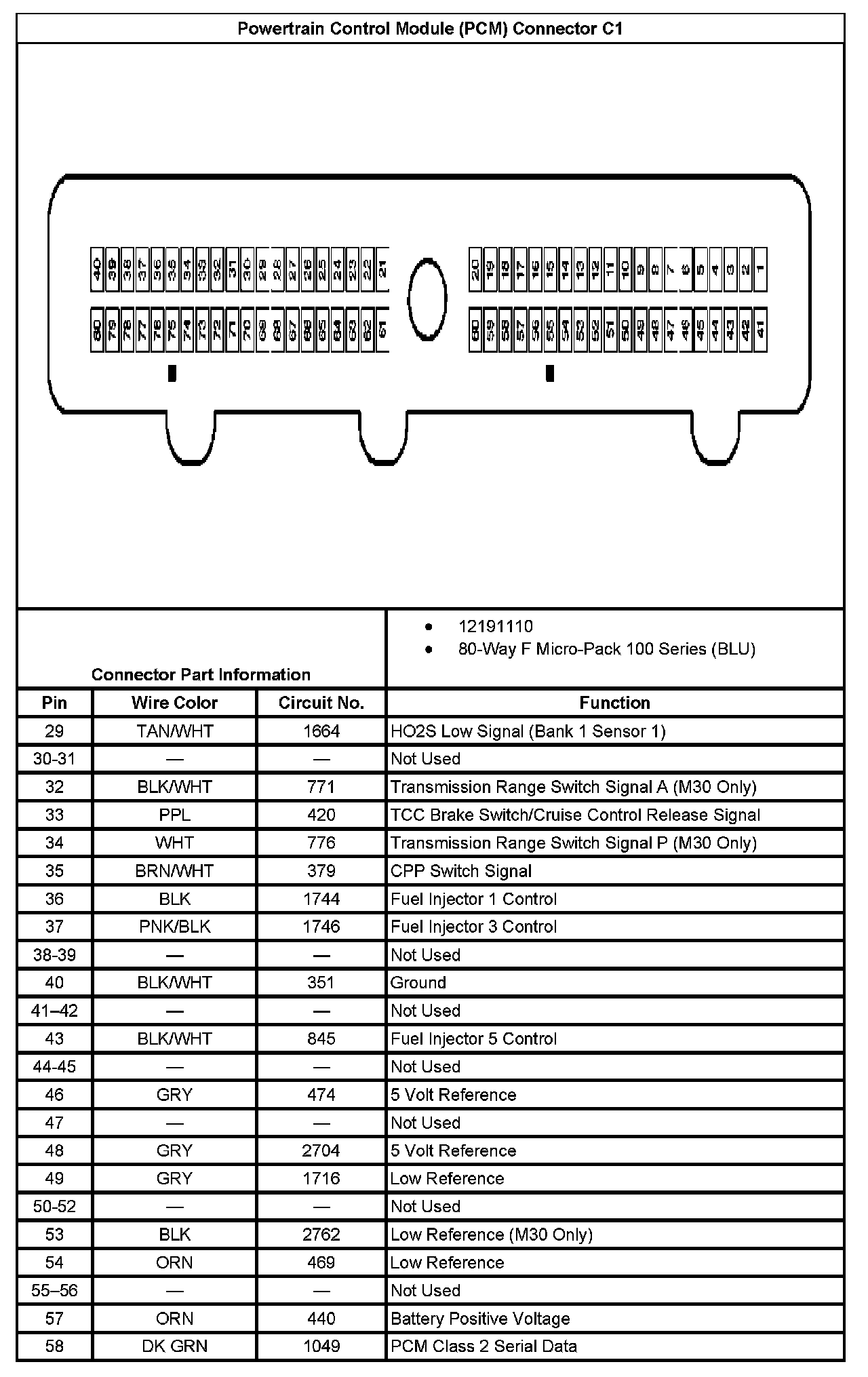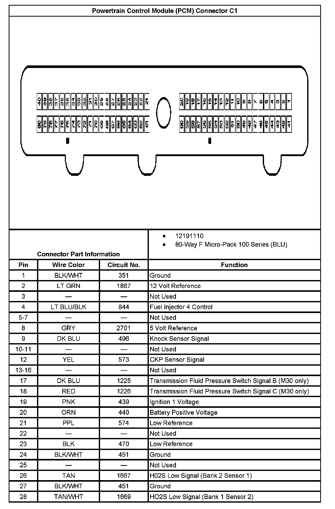 Powertrain Control Module (PCM) Connector C1 Part 1: