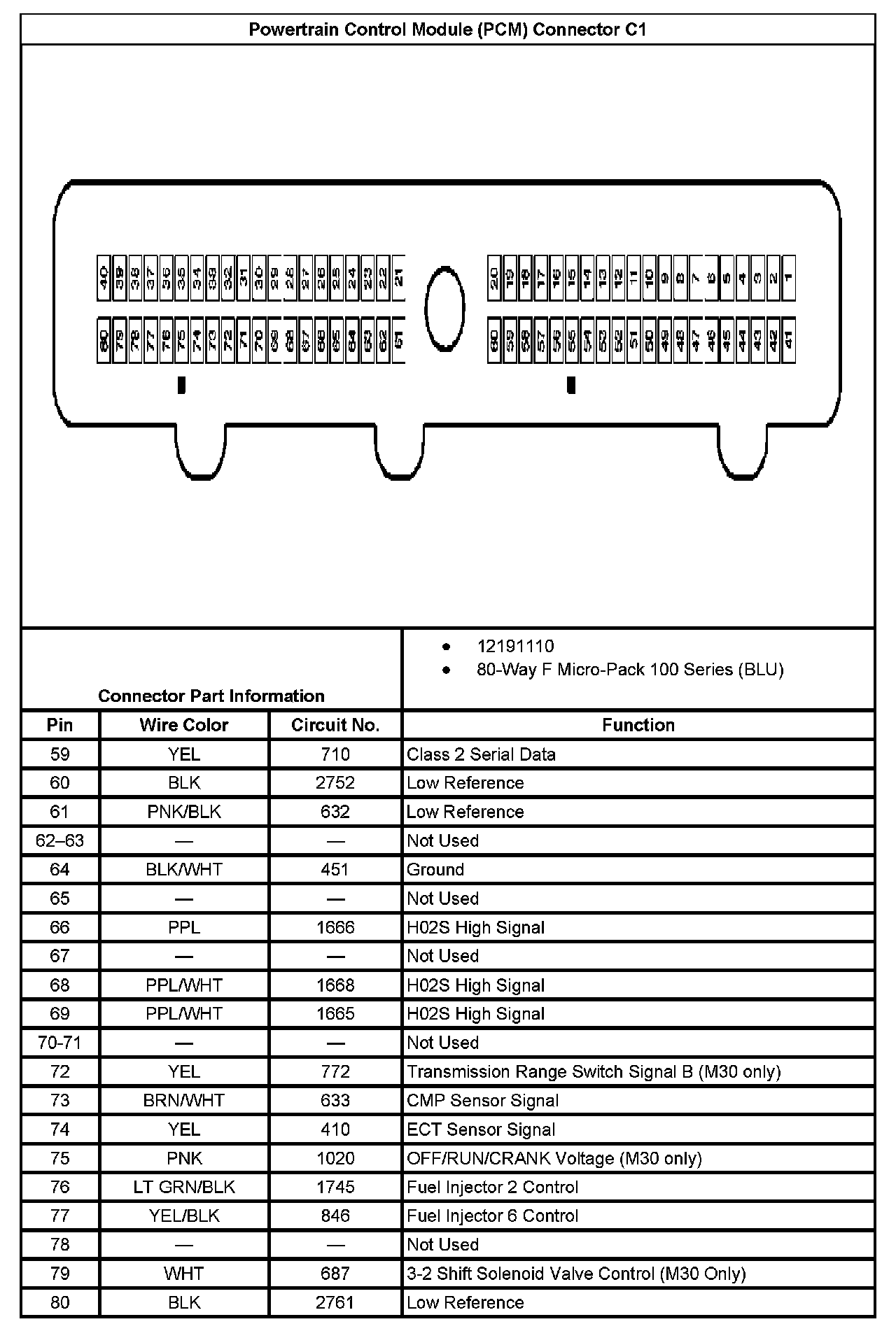 Powertrain Control Module (PCM) Connector C1 Part 2: