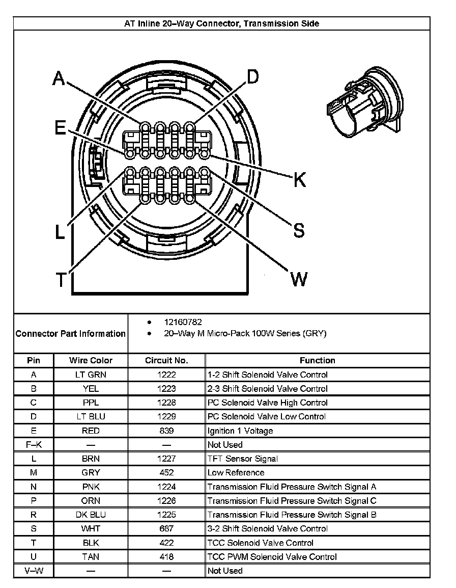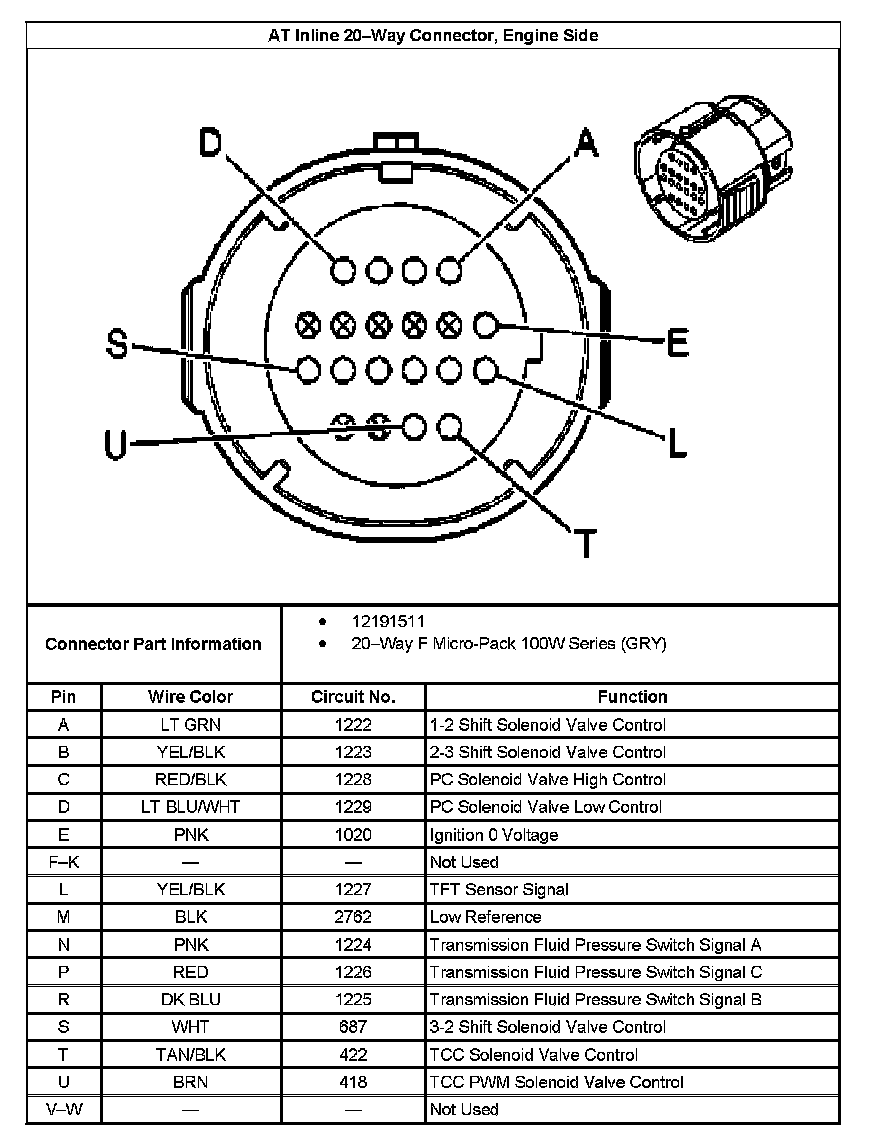 AT Inline 20-Way Connector End View, Transmission Side: