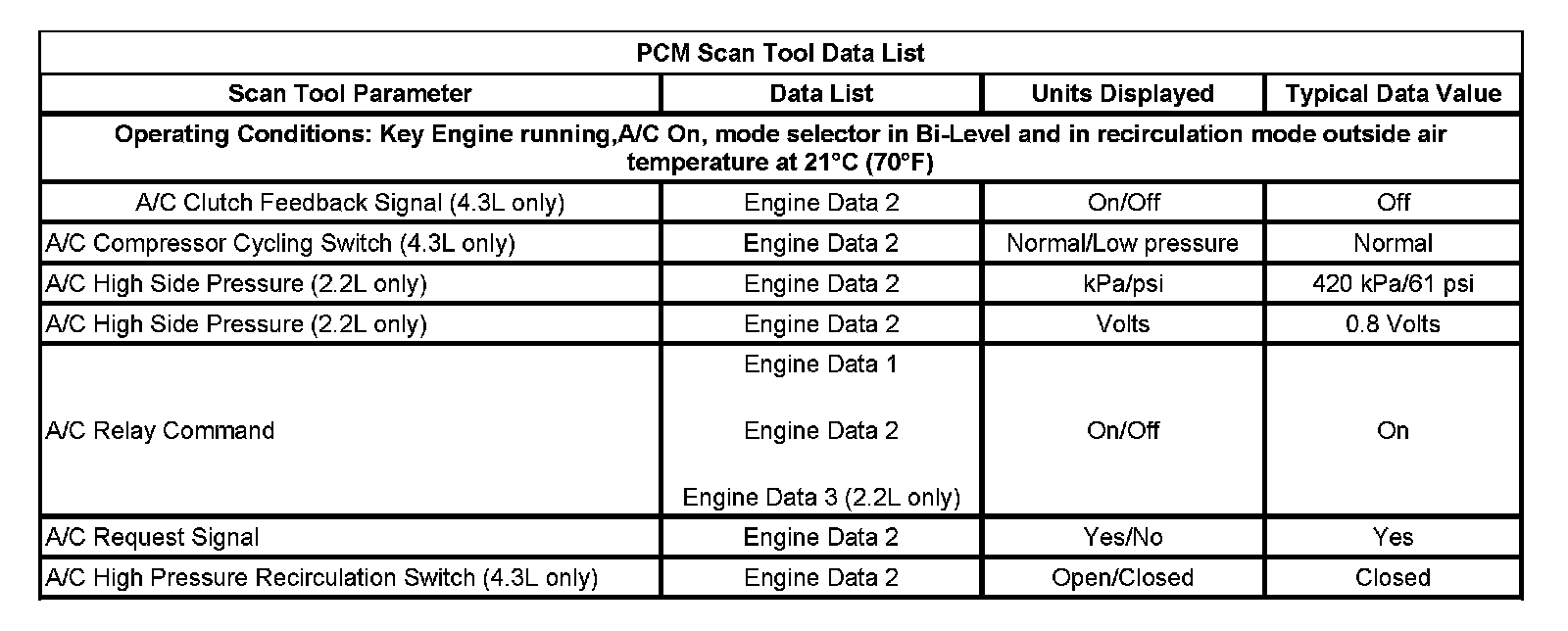PCM Scan Tool Data List: