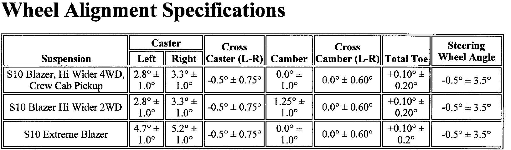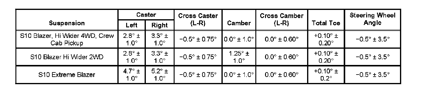 Wheel Alignment Specifications