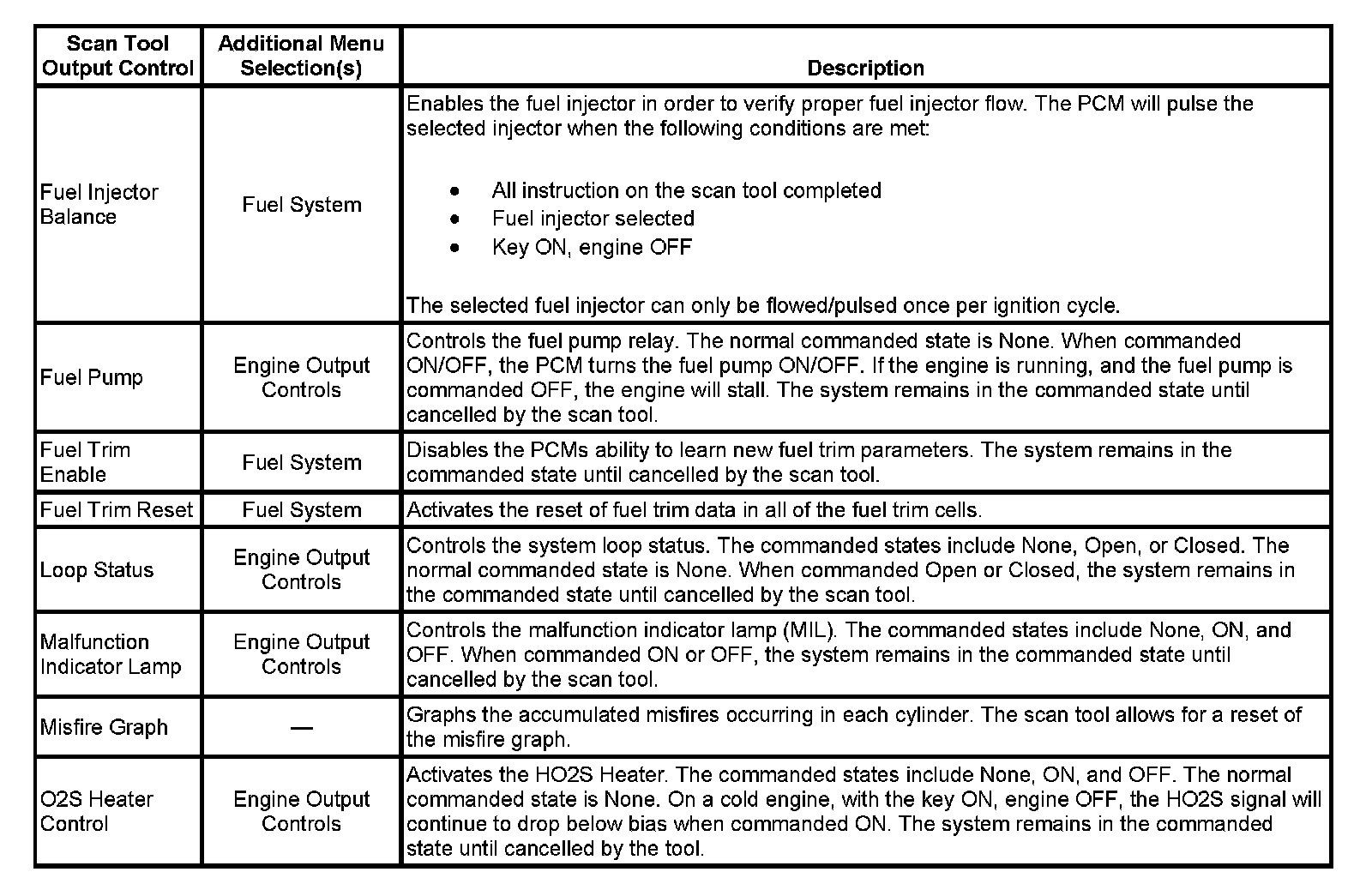 Scan Tool Output Controls