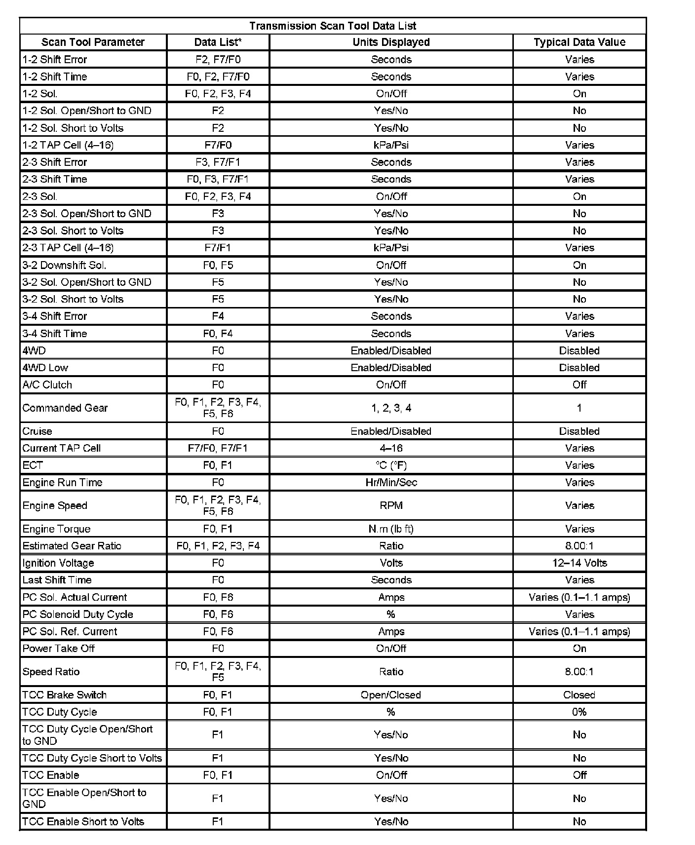 Only the parameters listed are used for diagnosing. If a scan tool displays other parameters, the values are not recommended by General Motors for use in diagnosis.