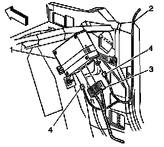 1. Install the OnStar(R) module (2) thorough the opening for the passenger inflator module.