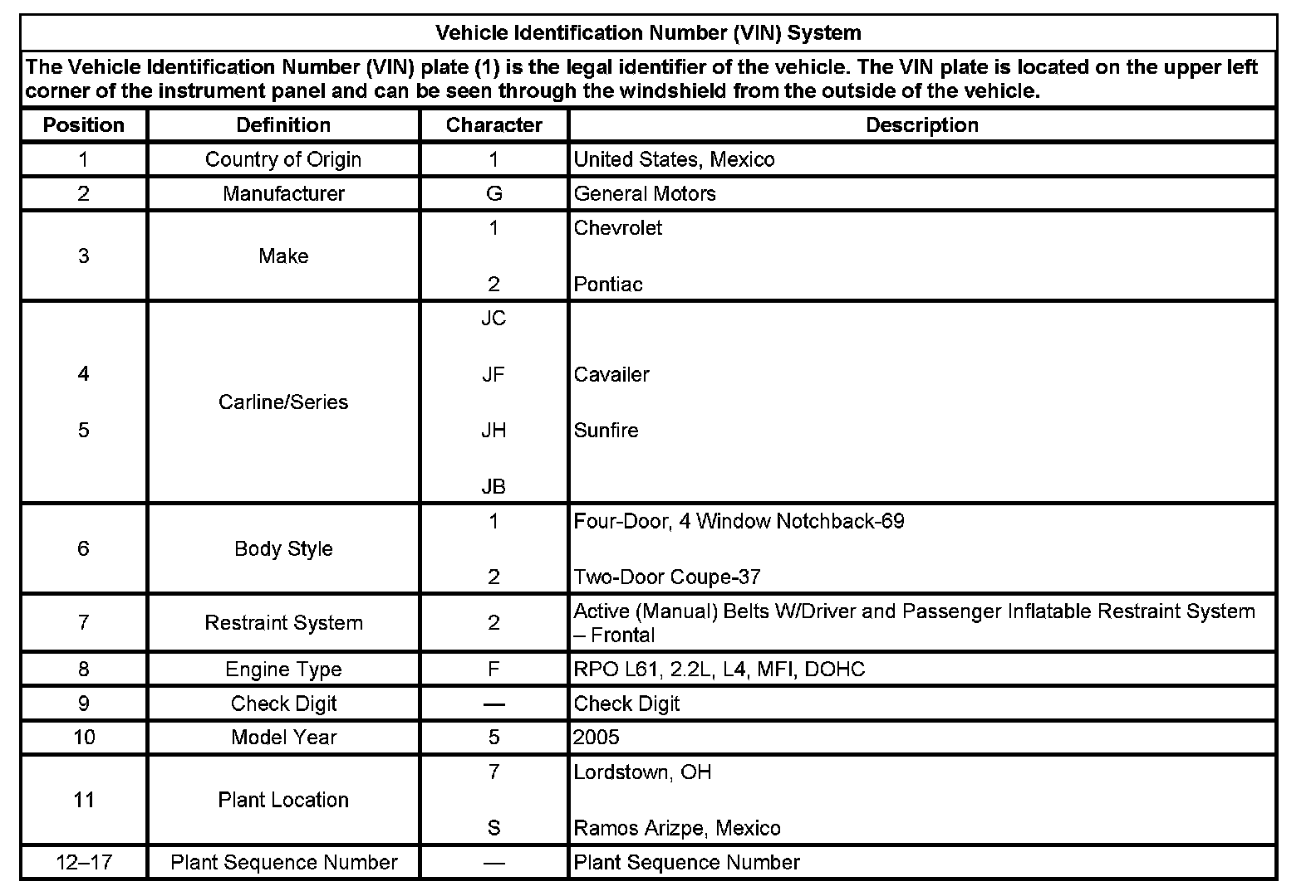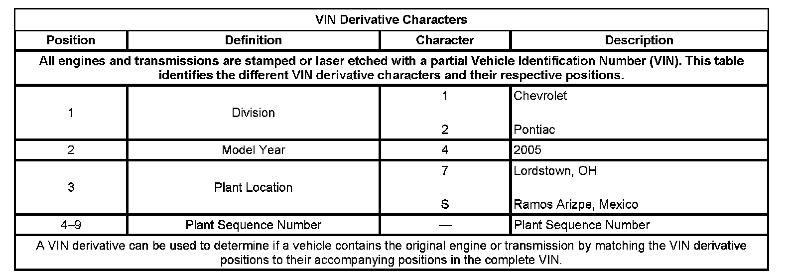 Vehicle, Engine And Transmission ID And VIN Location, Derivative And Usage: