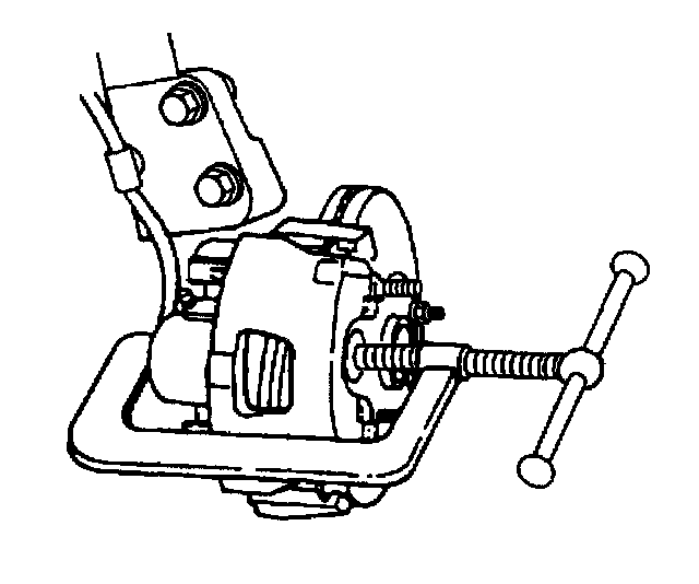 8. Tighten the C-clamp until the caliper piston is compressed into the caliper bore enough to allow the caliper to slide past the brake rotor.