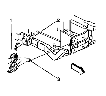 4. Remove the horn (1) from the front frame rail.