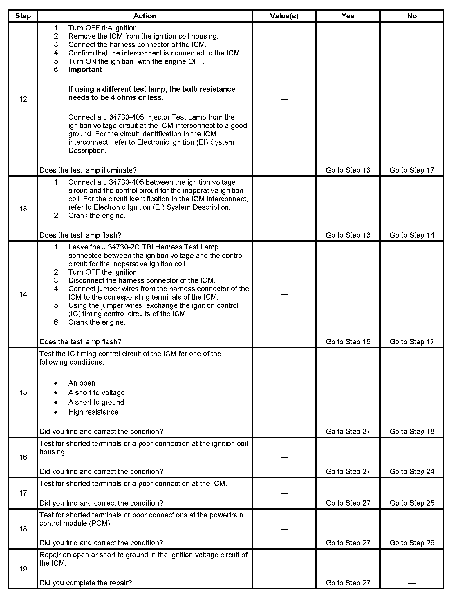 Each ignition coil supplies secondary voltage to a pair of spark plugs. This is called a waste spark ignition system. The powertrain control module (PCM) supplies a signal on each of the ignition control (IC) timing control circuits to the ignition control module (ICM). The ICM fires the correct ignition coil at the correct time based on the signals. The ICM detects if cylinder 1 or cylinder 3 is on the compression stroke by sensing the secondary voltage and polarity of each side of the ignition coil. The ICM detects this voltage with sensing circuitry integrated into each ignition coil. The higher voltage is on the compressing cylinder. This is called compression sense ignition. The ICM provides a synthesized cam signal to the PCM based on these inputs. The PCM uses the cam signal to synchronize fuel injection.