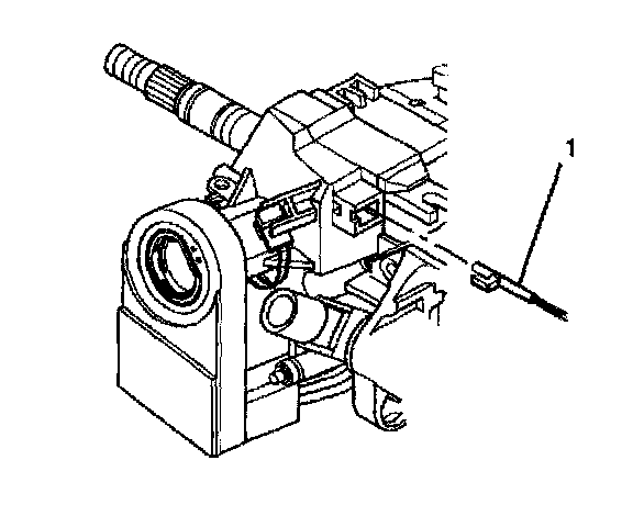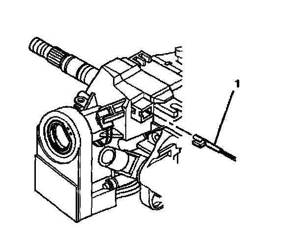 ^ The locking tab at the end of the park lock cable assembly (1) must be installed into the ignition lock cylinder case.