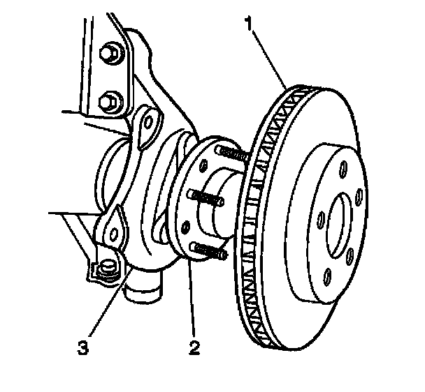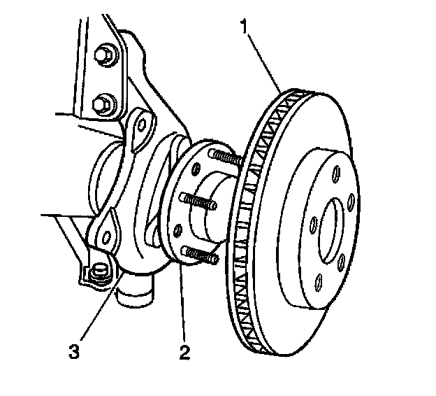 1. Using the J 42450-A, thoroughly clean any rust or corrosion from the mating surface of the hub/axle flange (2).