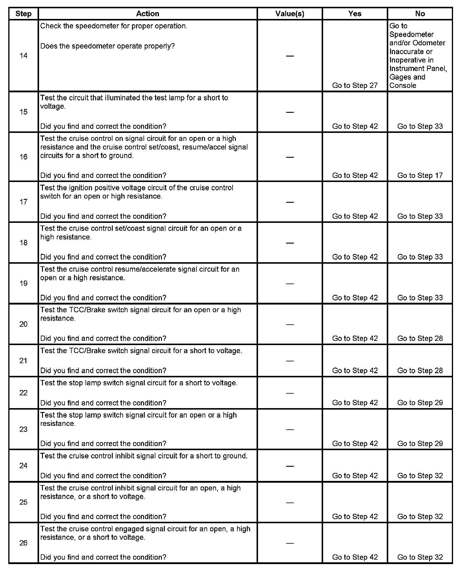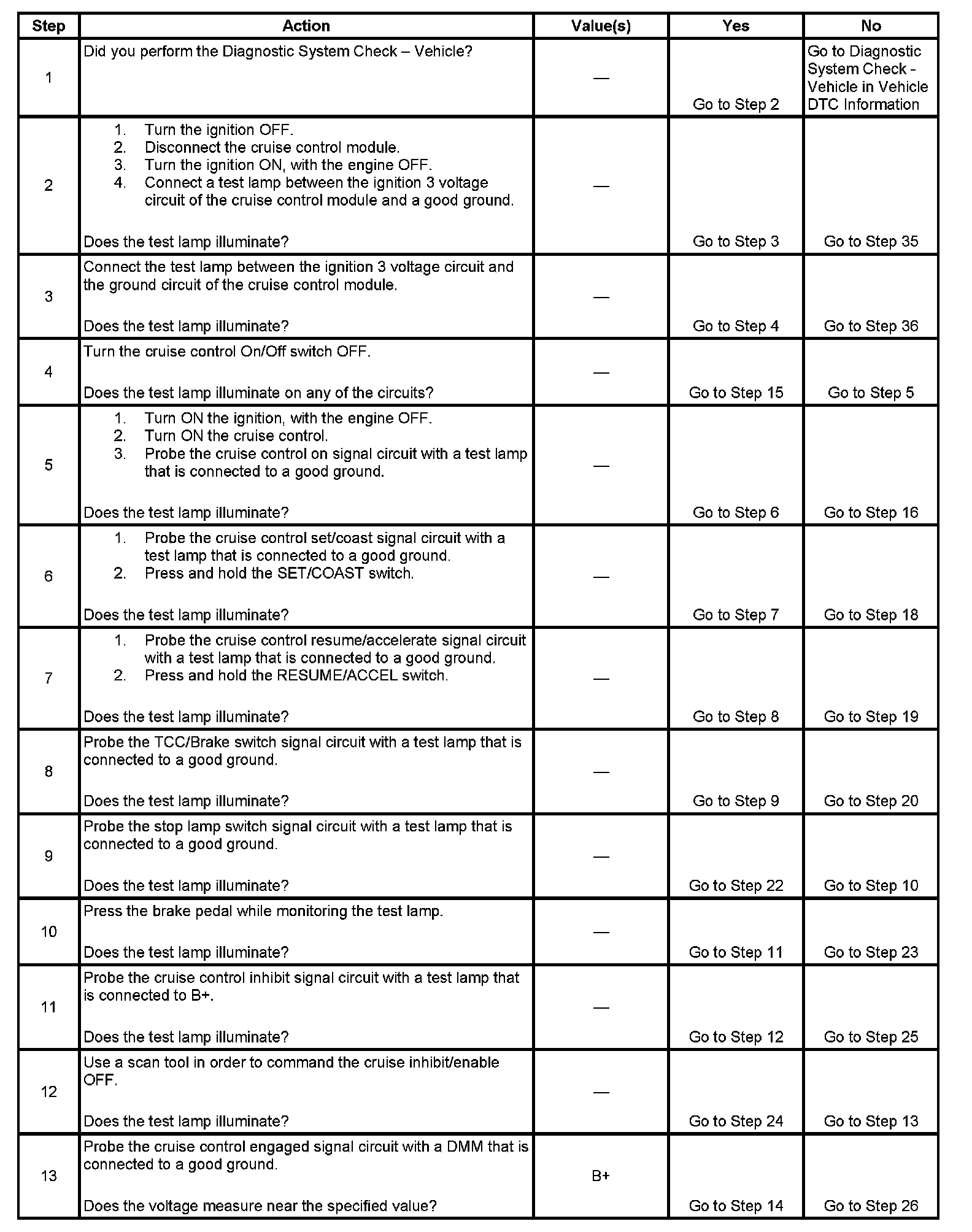 - When testing vehicles equipped with steering wheel controls, the steering wheel must be rotated to each stop position while testing the cruise control switch signal circuits. This will ensure the integrity of the SIR coil.