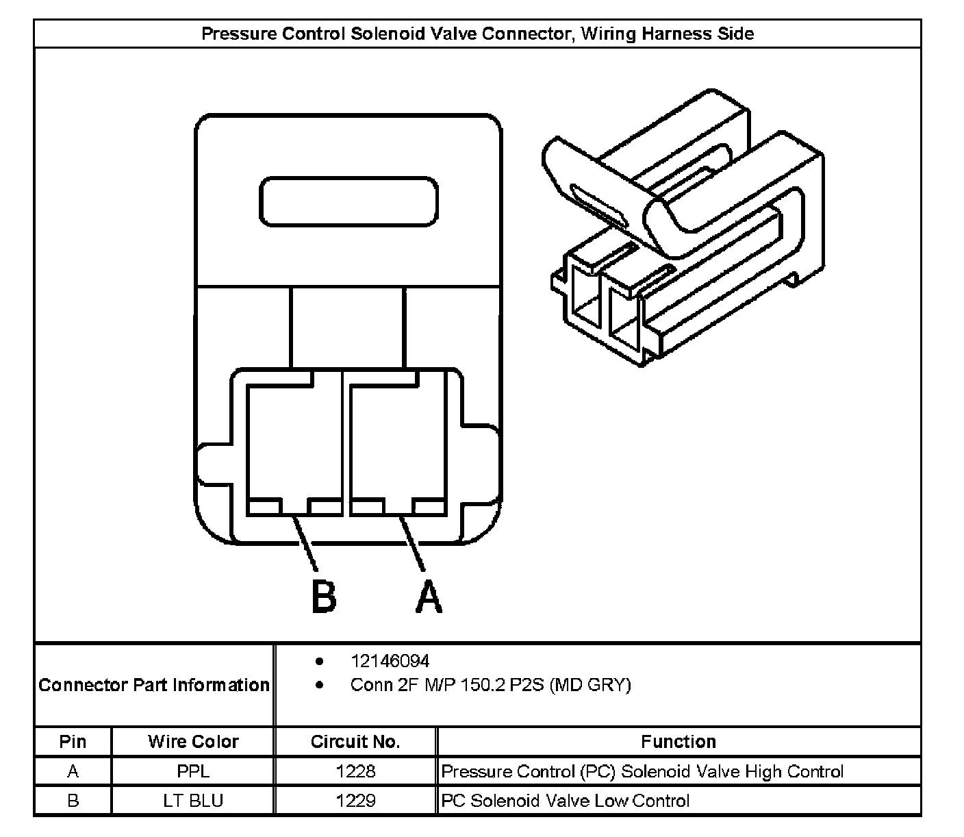 Pressure Control Solenoid Valve Connector Wiring Harness Side: