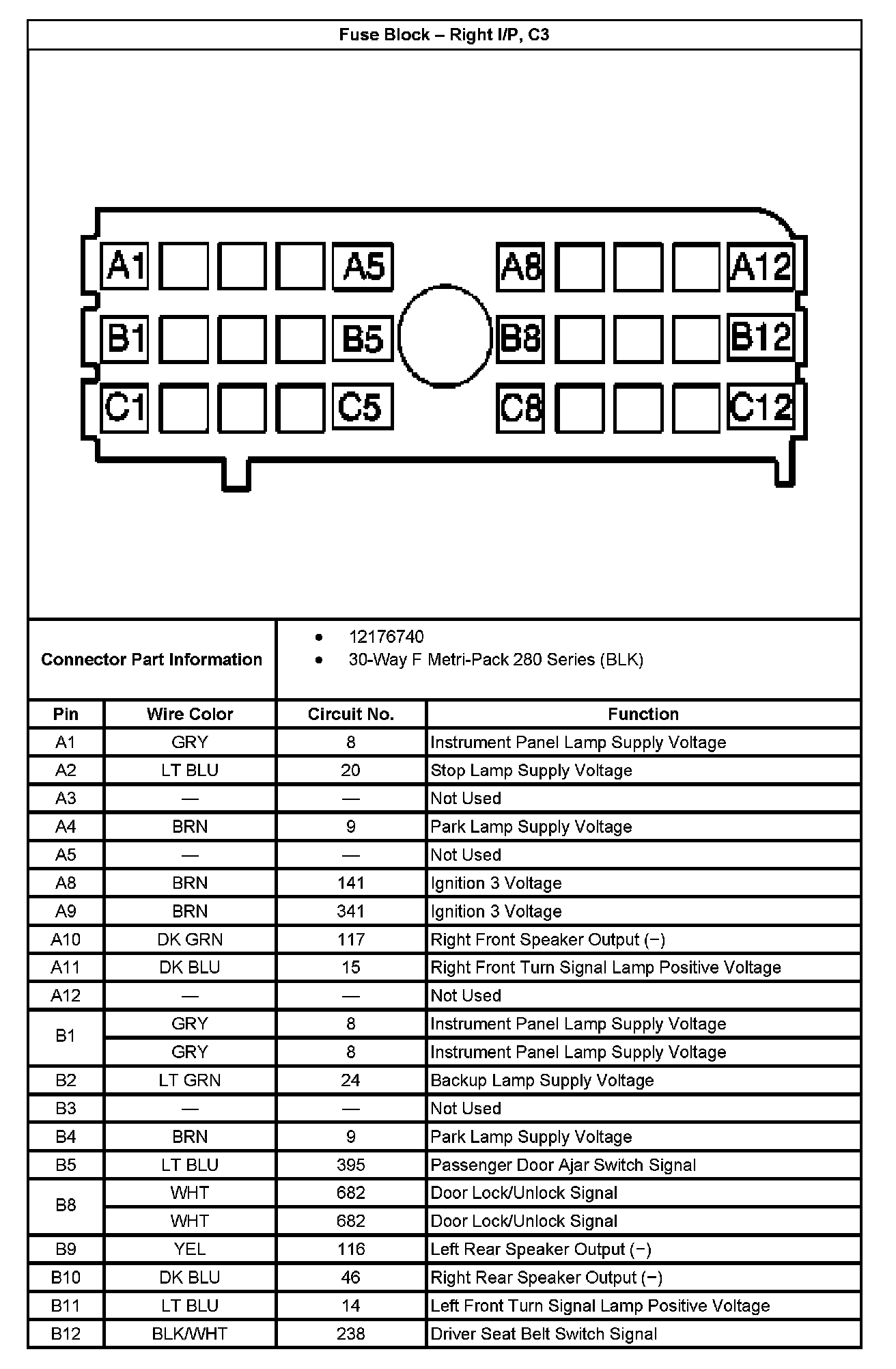 Fuse Block - Right I/P, C3 Part 1: