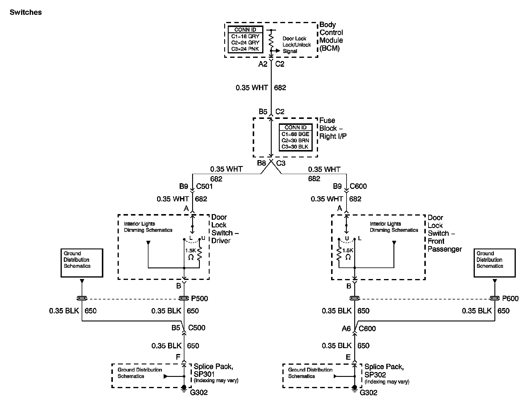 Locations: The locations for the Connectors, Grounds, Splices, and Grommets shown within these diagrams can be found via their numbers at Vehicle Locations. Locations