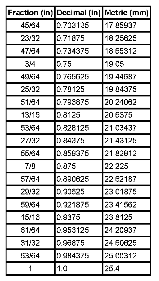Equivalents - Decimal And Metric