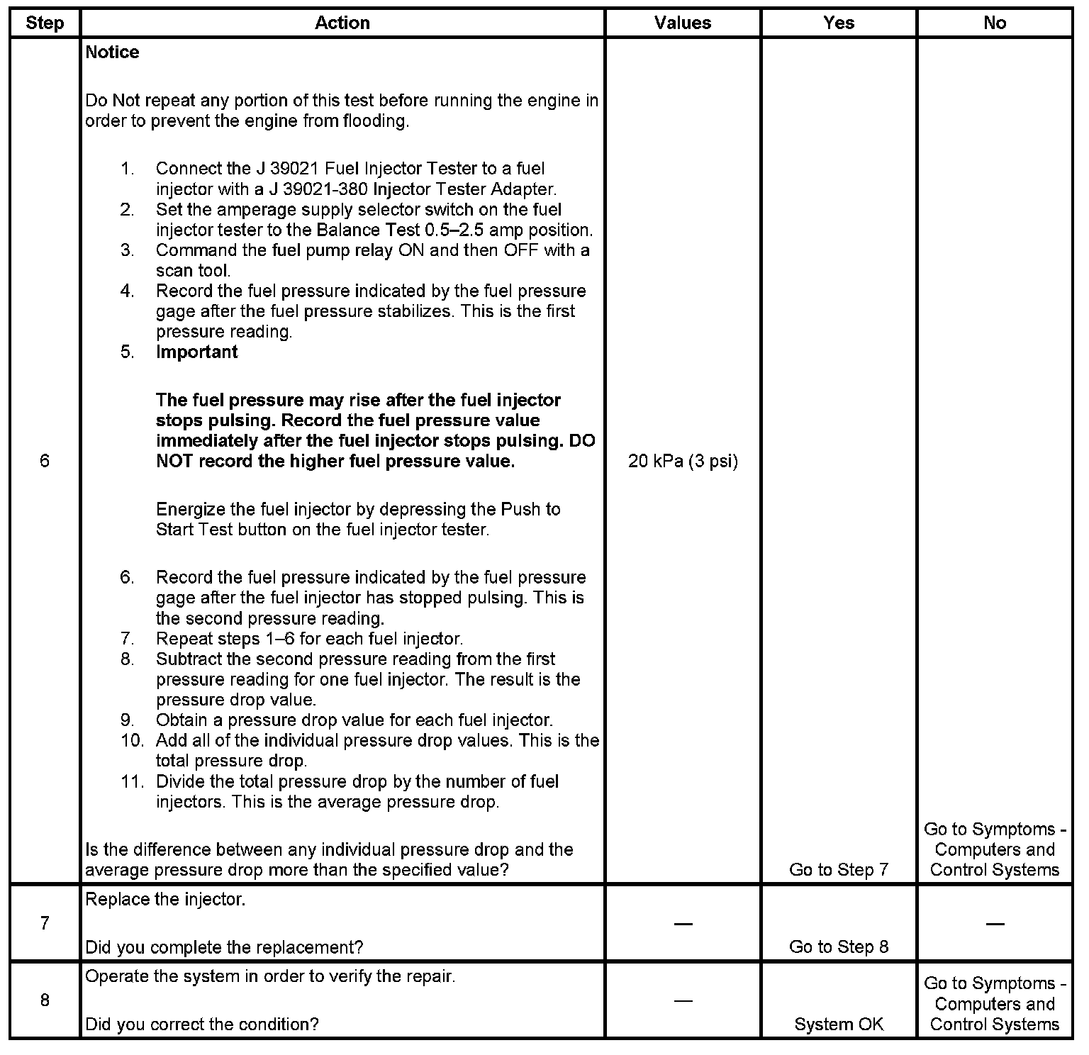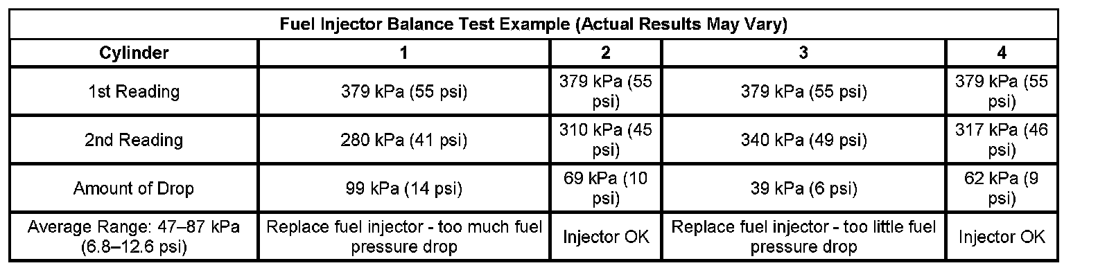 Fuel Injector Balance Test Example (Actual Results May Vary):