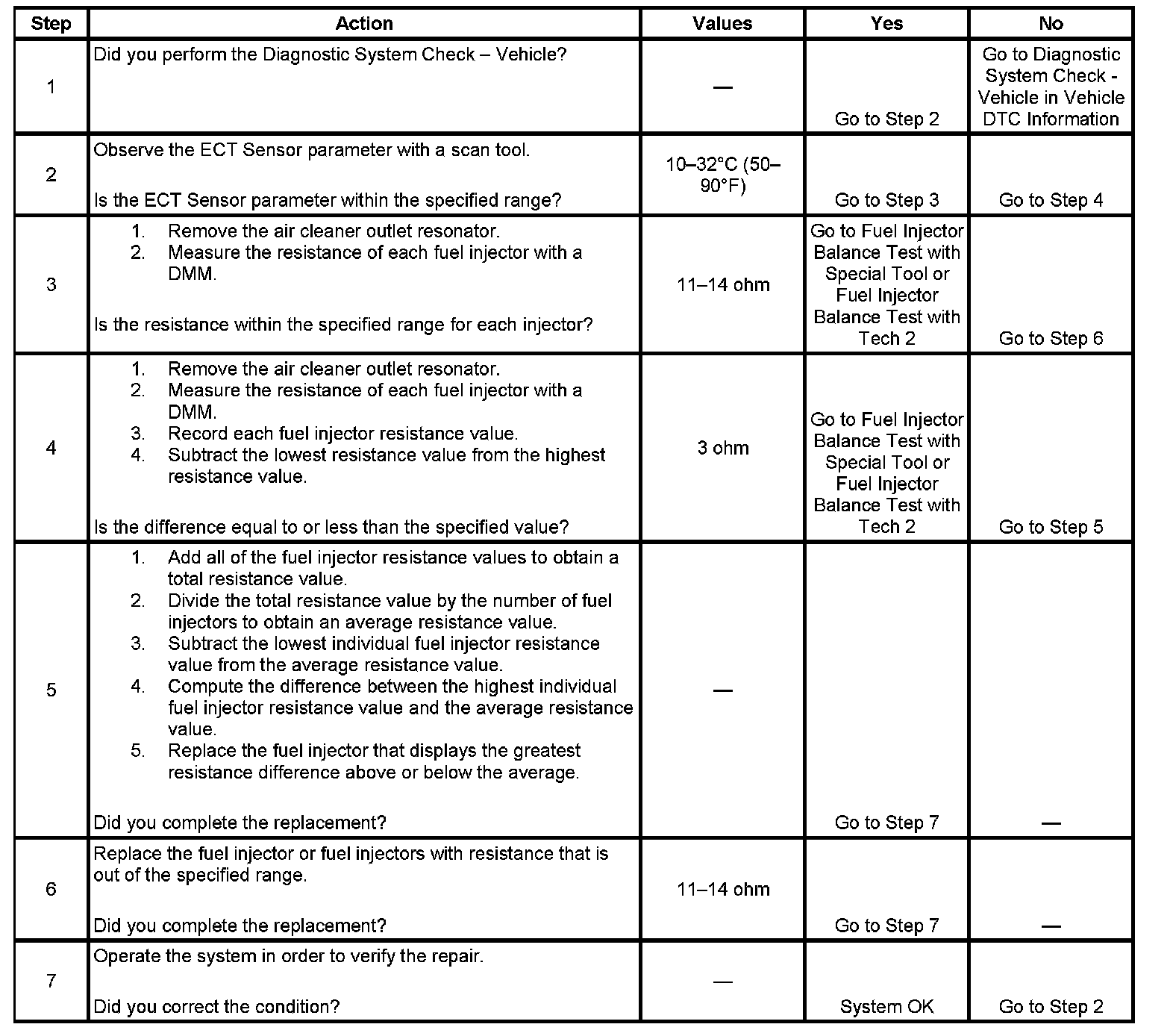 - Perform the fuel injector coil test within the conditions of the customer's concern. A fuel injector condition may only be apparent at a certain temperature, or under certain conditions.