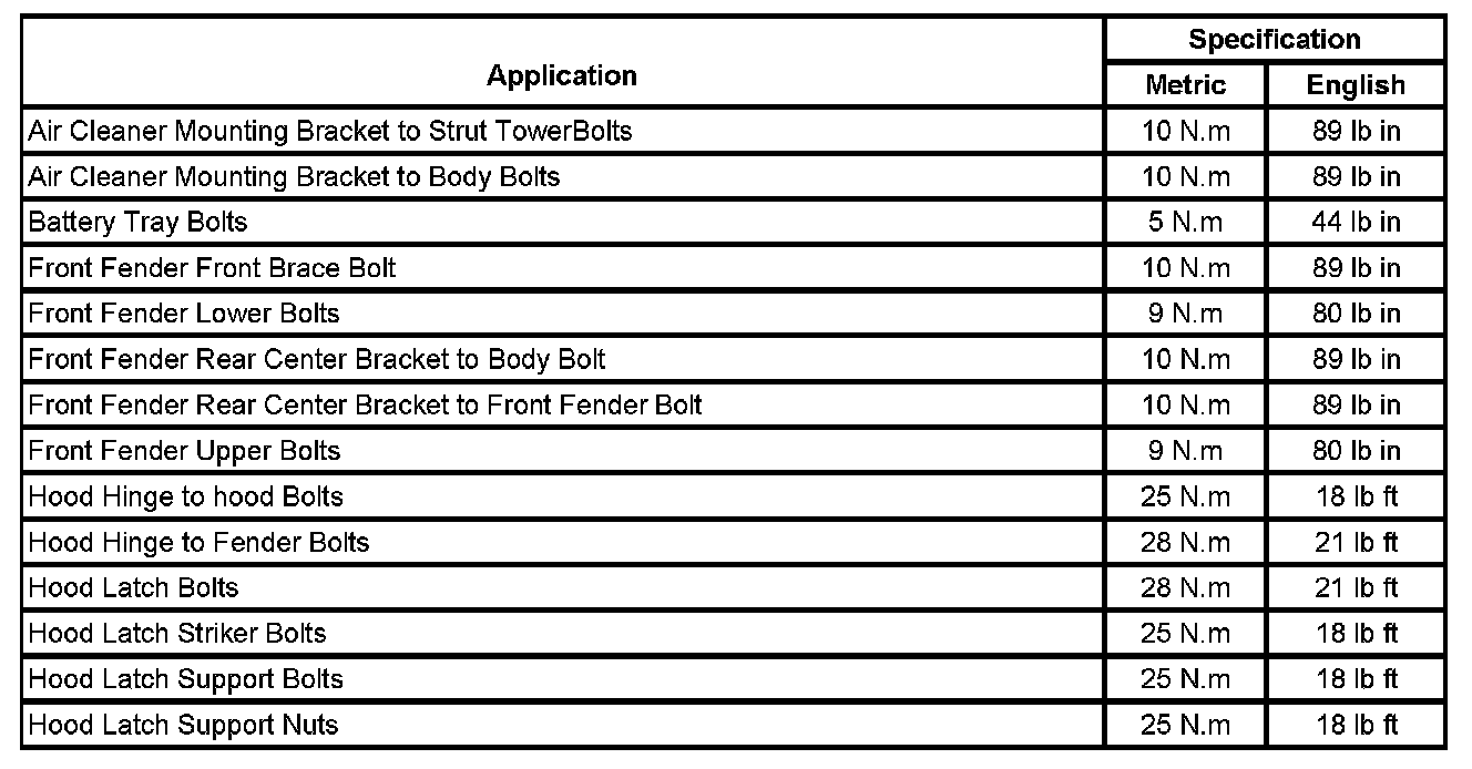Fastener Tightening Specifications