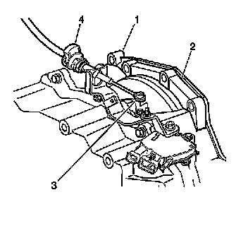 2. Remove the cable (4) at the transmission (2) shift control assembly (3).
