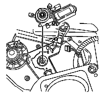 1. Position the front door window regulator motor to the alignment pins on the front door locking system module.
