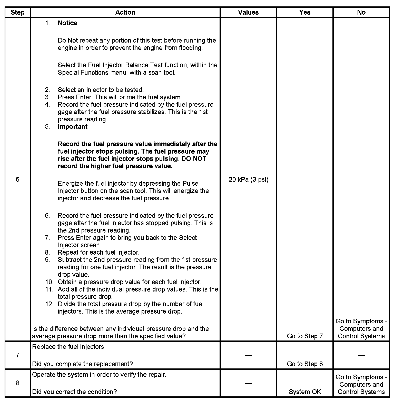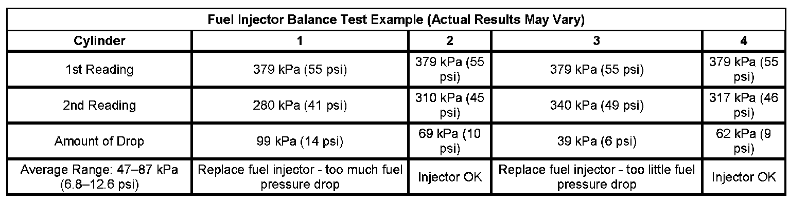 Fuel Injector Balance Test Example (Actual Results May Vary):