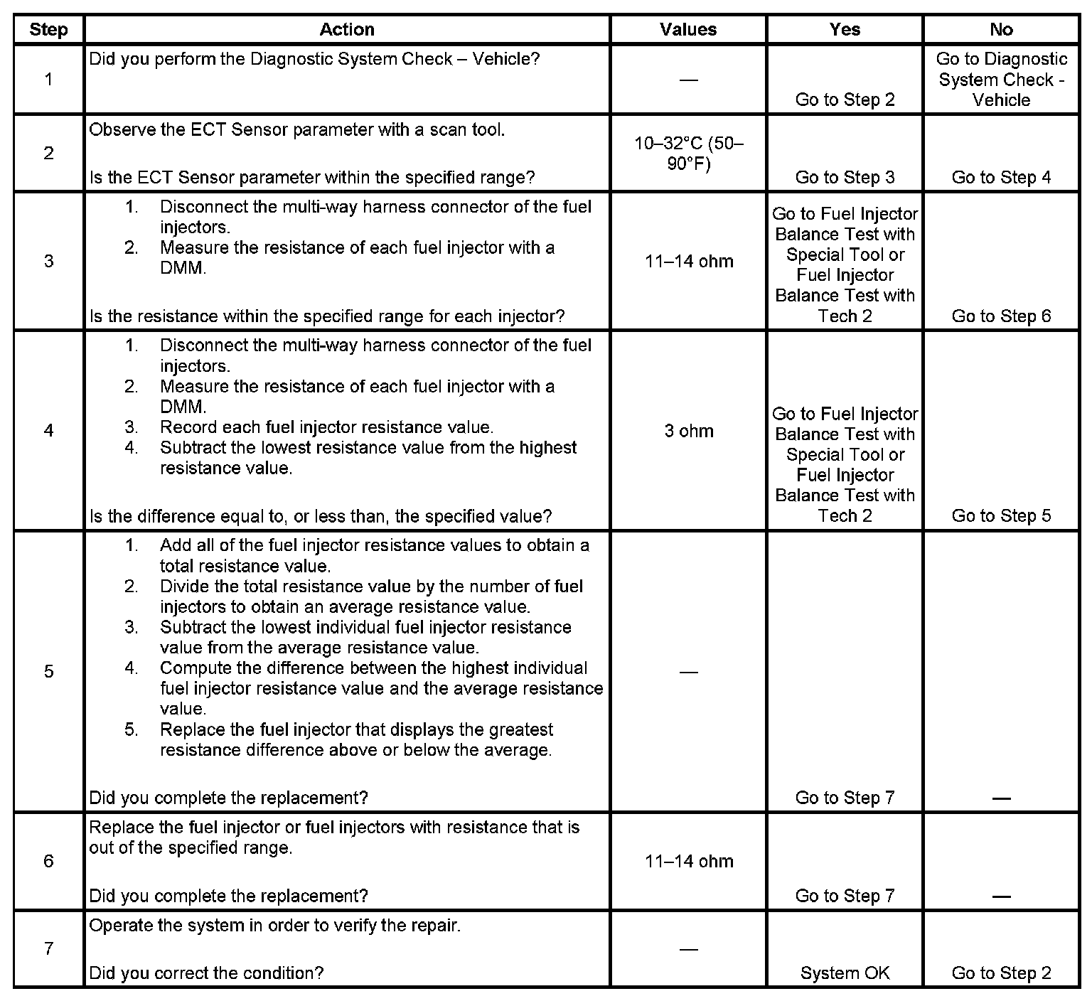 - Perform the fuel injector coil test within the conditions of the customer's concern. A fuel injector condition may only be apparent at a certain temperature, or under certain conditions.