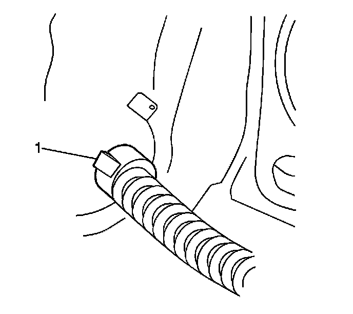 3. Secure the rear park brake cable end fitting (1) to the brake backing plate.