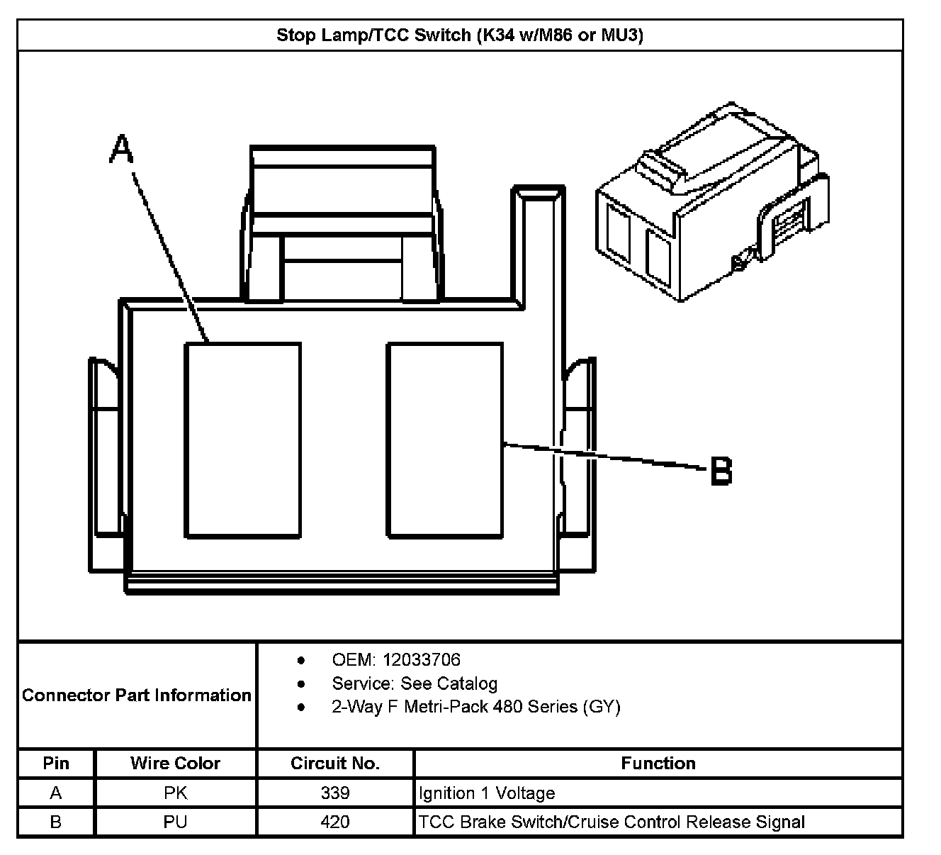 Stop Lamp/TCC Switch (K34 With RPO Code M86 Or MU3):