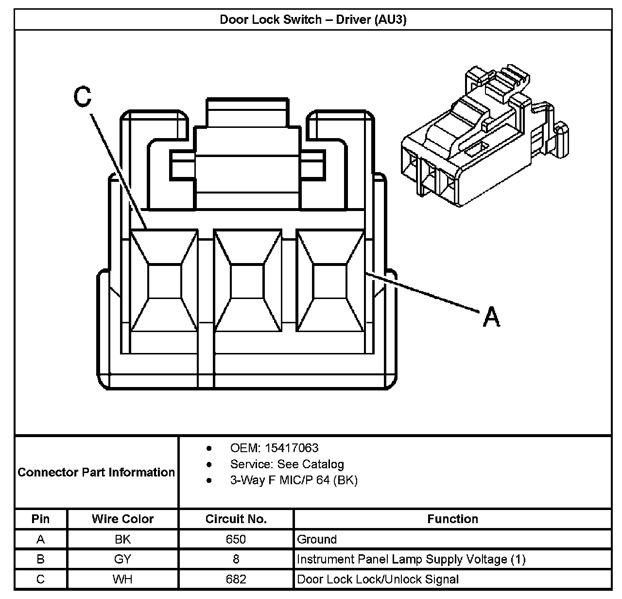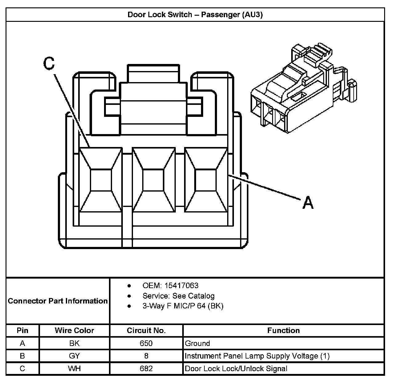 Door Lock Switch - Passenger (With RPO Code AU3):