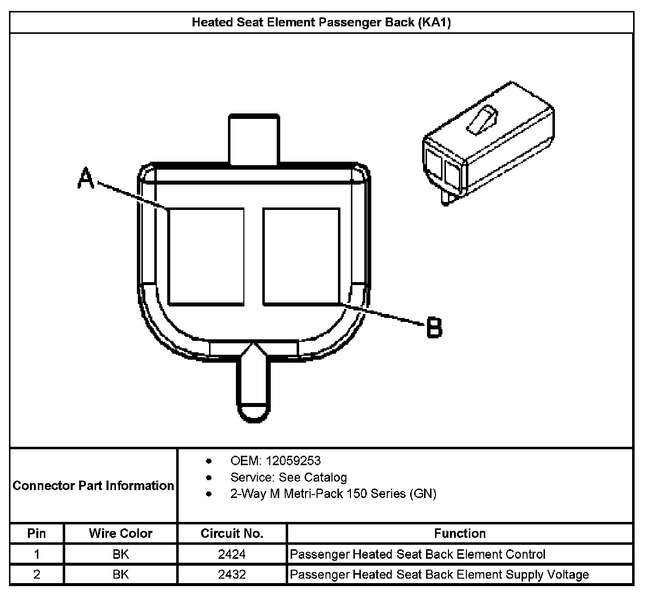 Heated Seat Element Passenger Back (With RPO Code KA1):