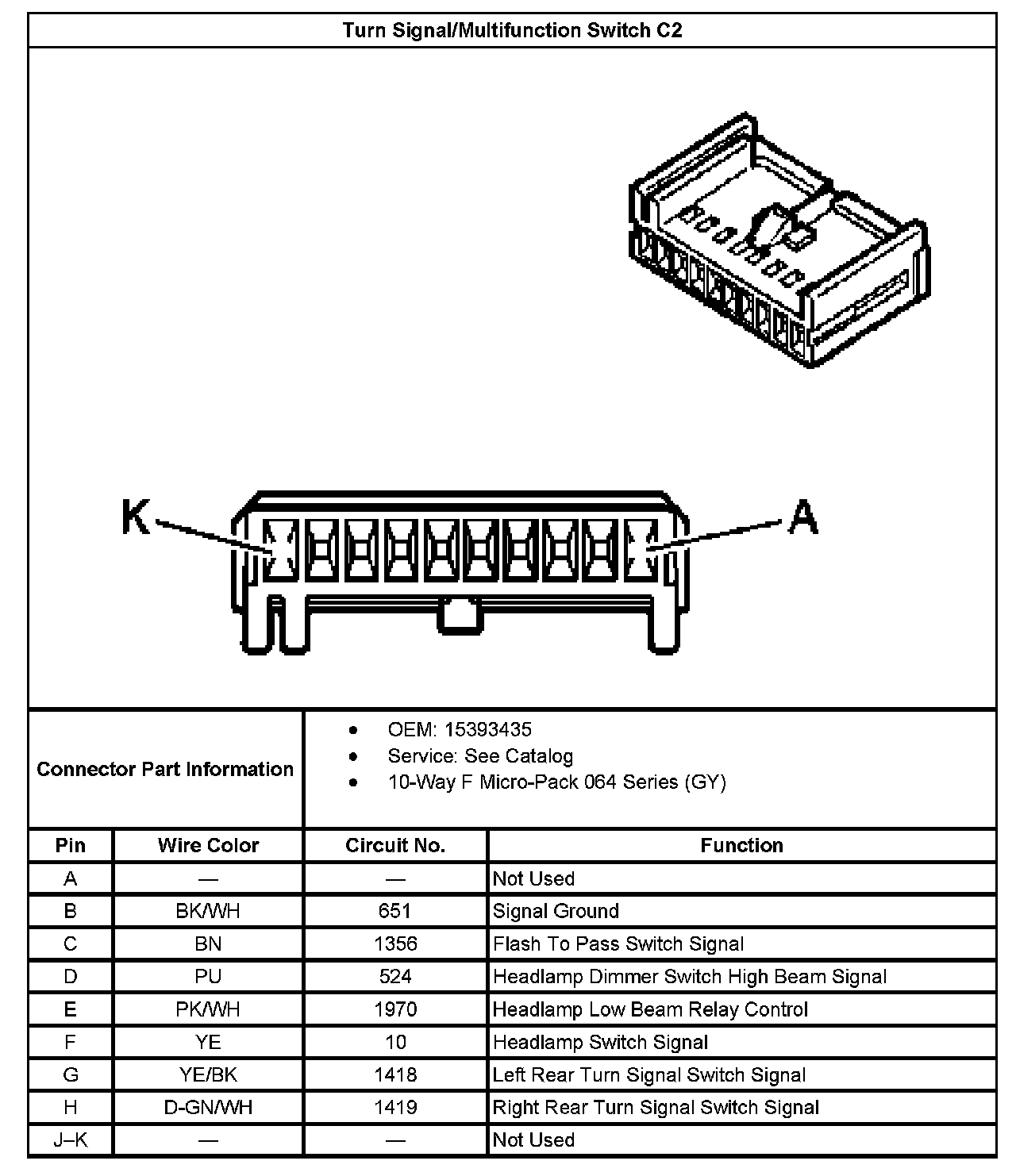 Turn Signal/Multifunction Switch C2: