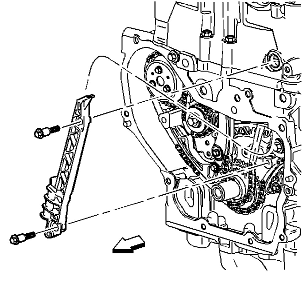 9. Remove the fixed timing chain guide.