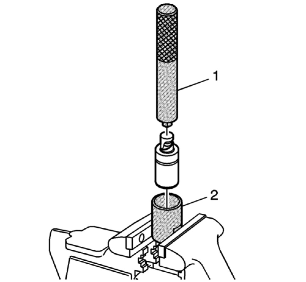 28.2 Install the J 45027-2 (2) into a vise.