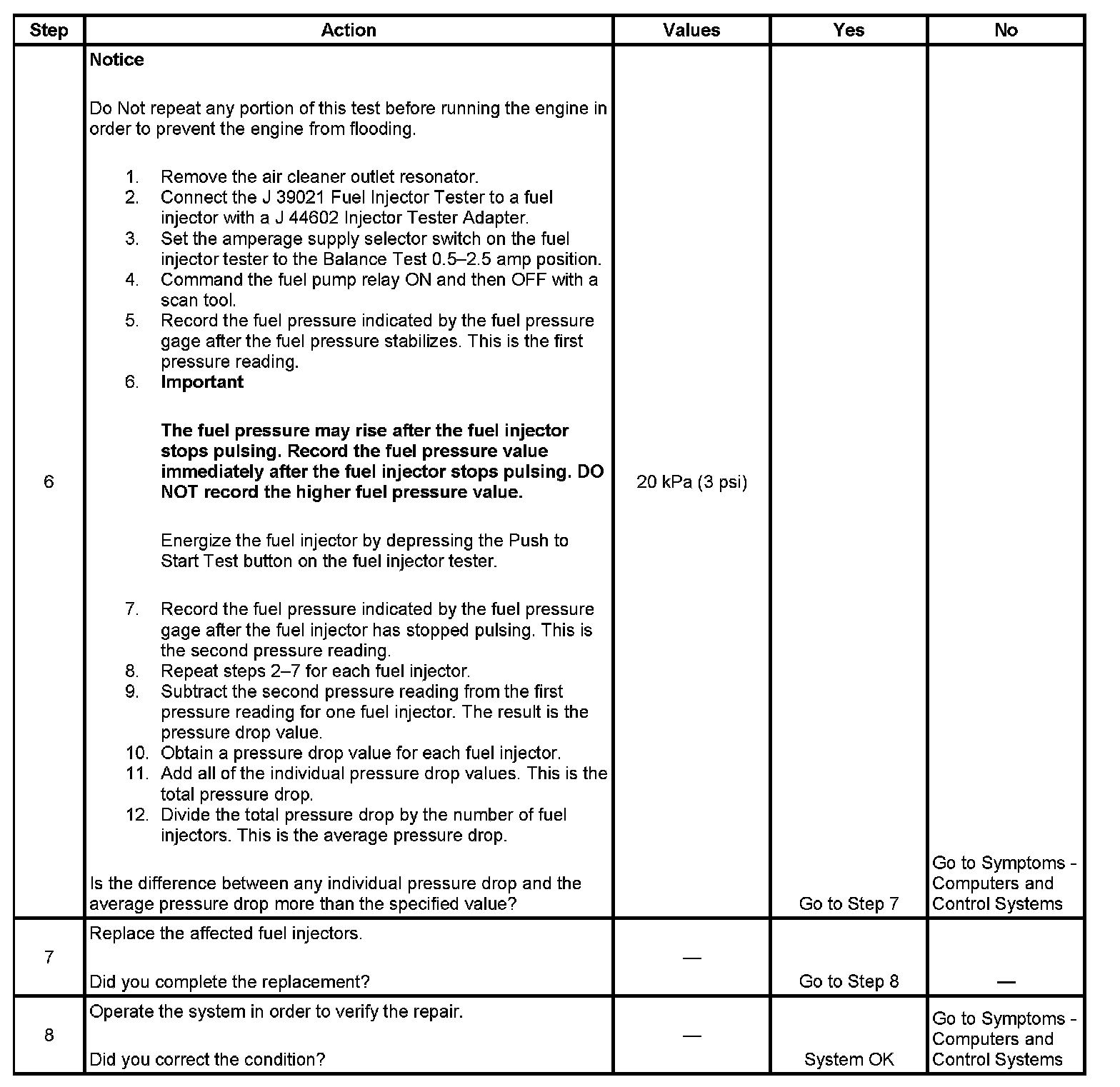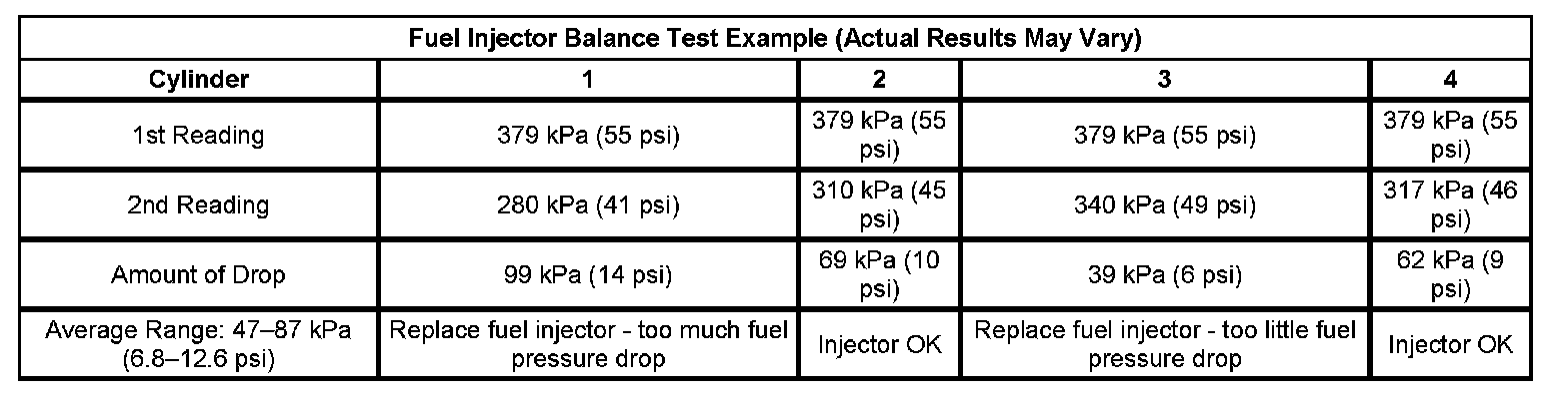 Fuel Injector Balance Test Example (Actual Results May Vary):