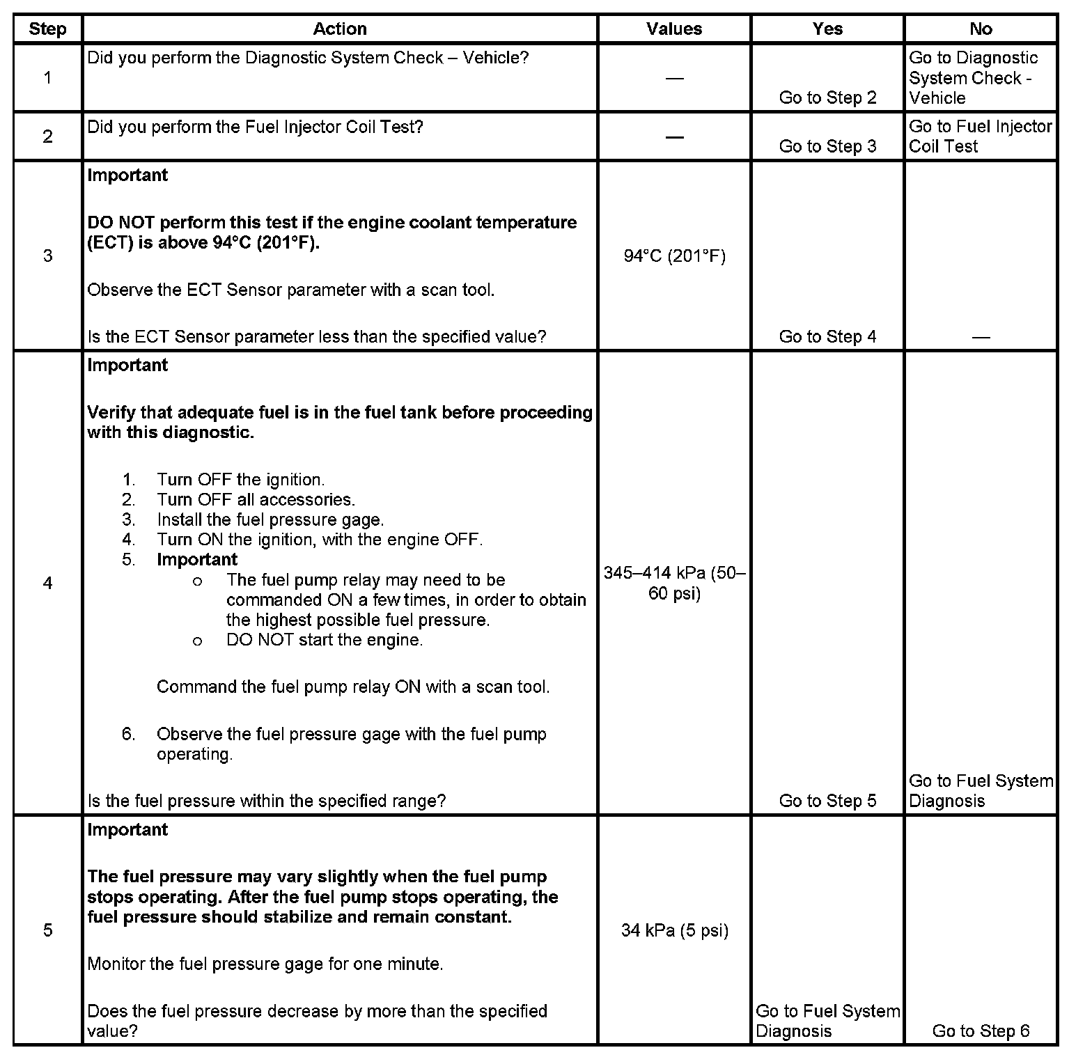 3. The engine coolant temperature (ECT) must be below the operating temperature in order to avoid irregular fuel pressure readings due to hot soak fuel boiling.