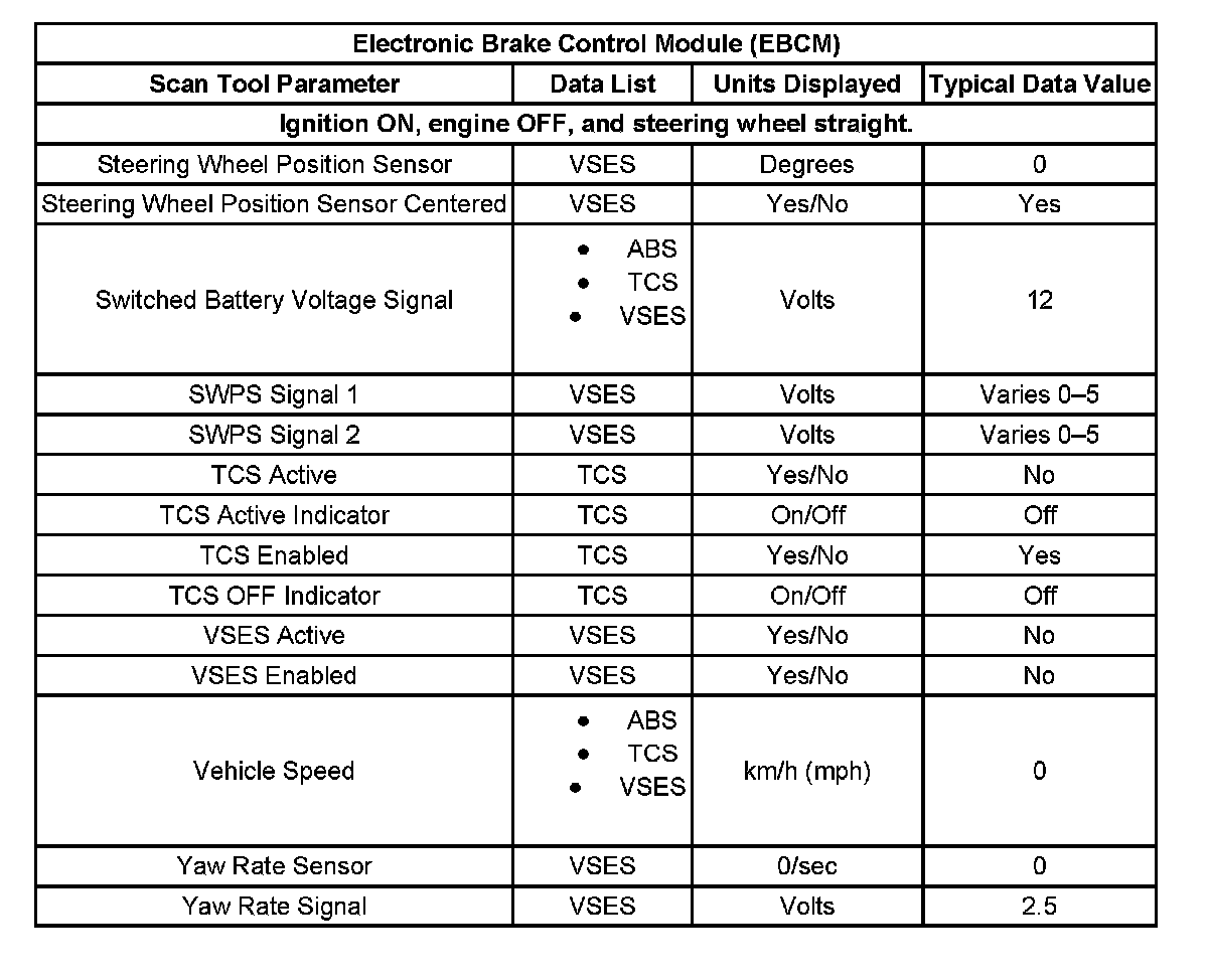 Scan Tool Data List