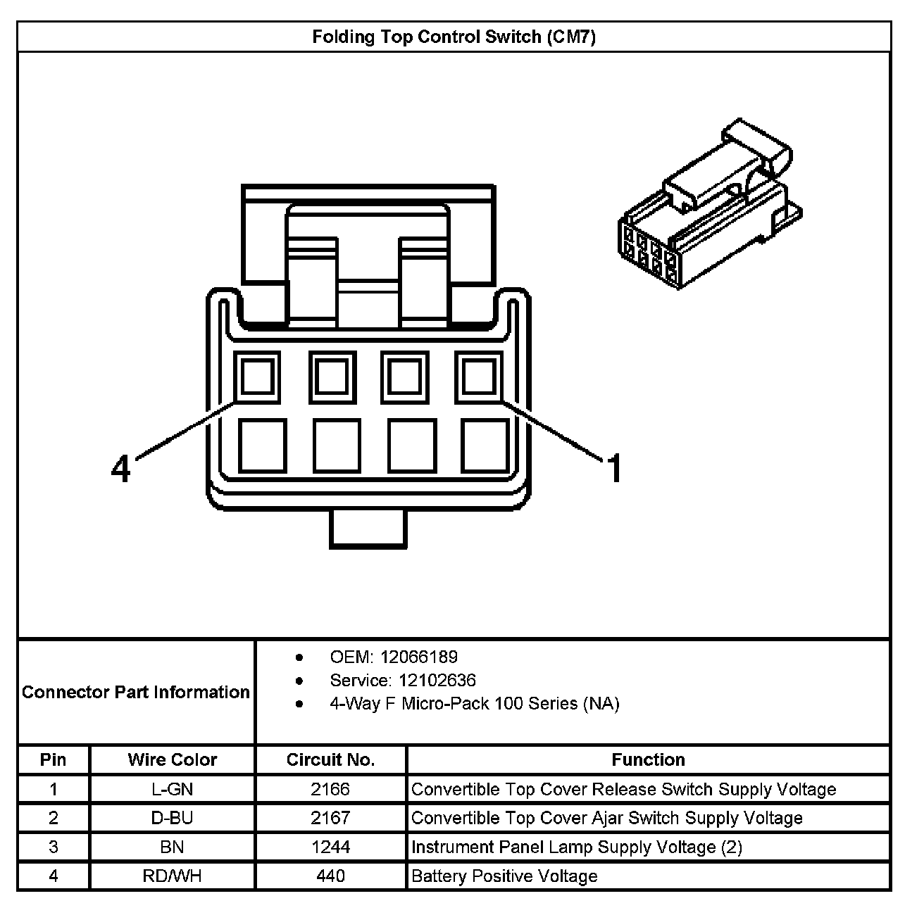 Folding Top Control Switch (With RPO Code CM7):