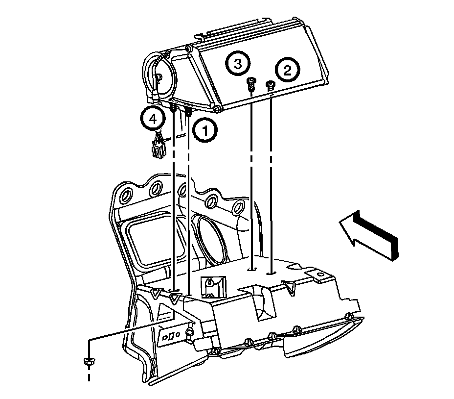 8. Install the bolts (3) which secure the knee bolster bracket to the center support bracket.