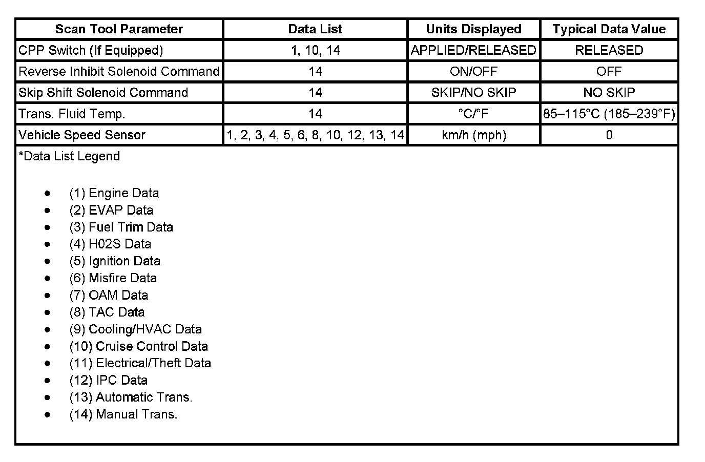 Transmission Scan Tool Data List