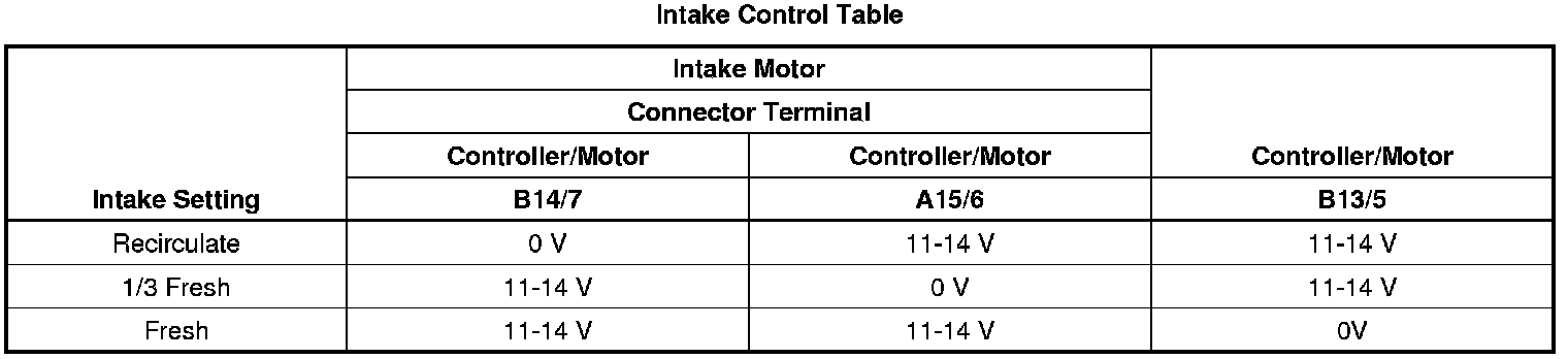 Intake Control Table