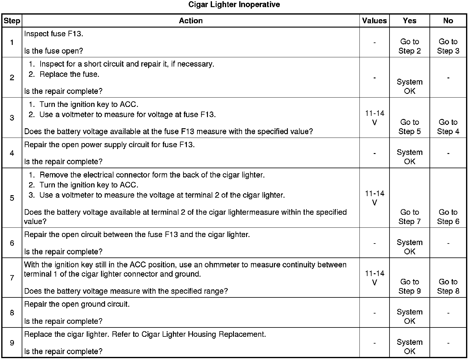 Cigar Lighter Inoperative