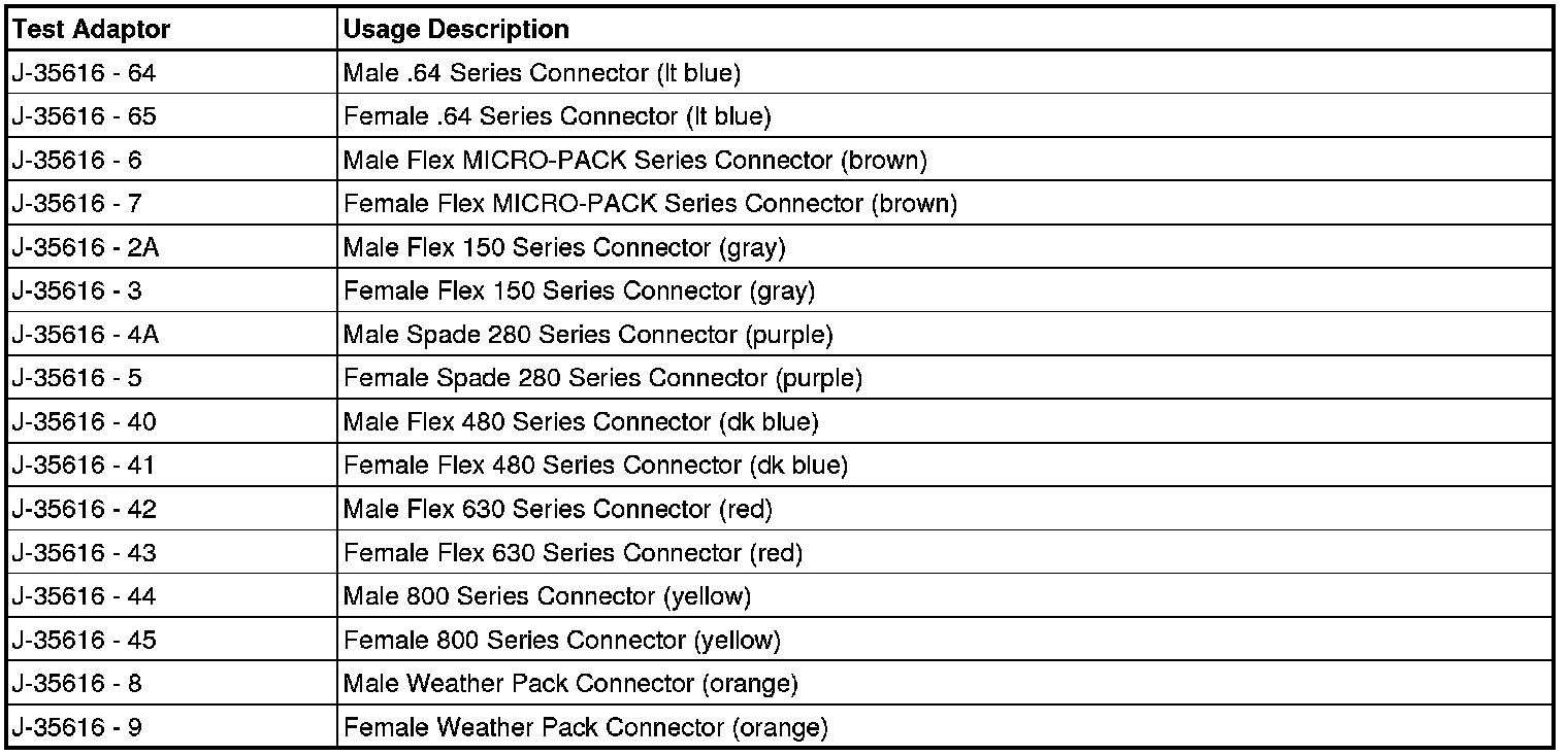 Do not insert test equipment probes into any connector or fuse block terminal. The diameter of the test probes will deform most terminals. A deformed terminal can cause a poor connection, which can result in system failures. Always use the J 35616 GM-Approved Terminal Test Kit in order to frontprobe terminals. Do not use paper clips or other substitutes as they can damage terminals and cause incorrect measurements.