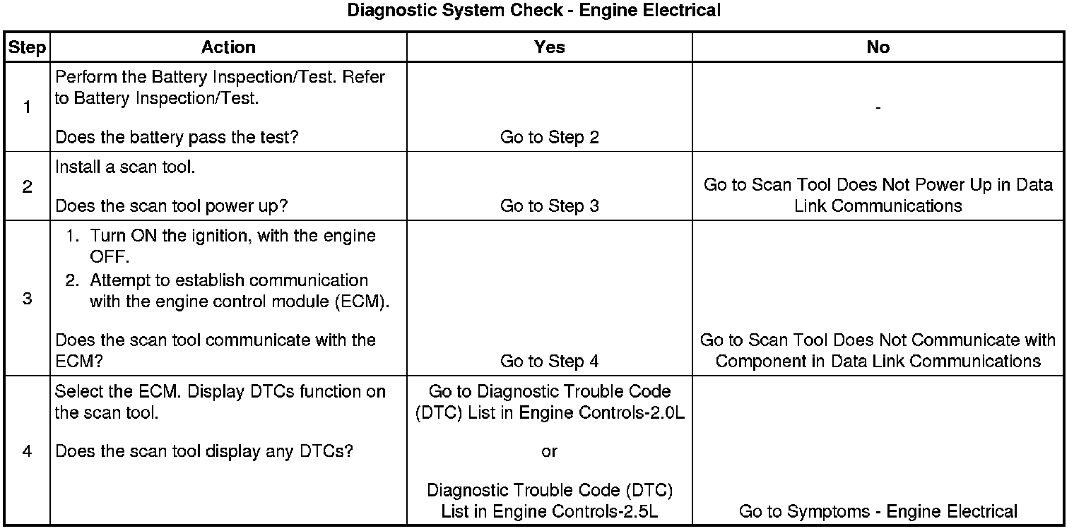 The presence of DTCs may be related to an engine electrical condition. The specified procedure will compile all the available information before tests are performed.